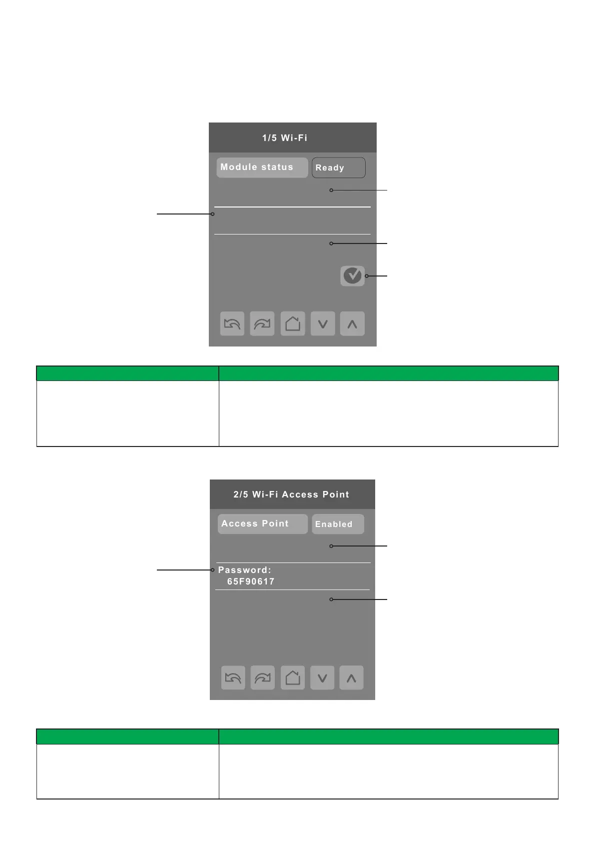 Displays the current status of the Wi-Fi module. It would normally display Ready