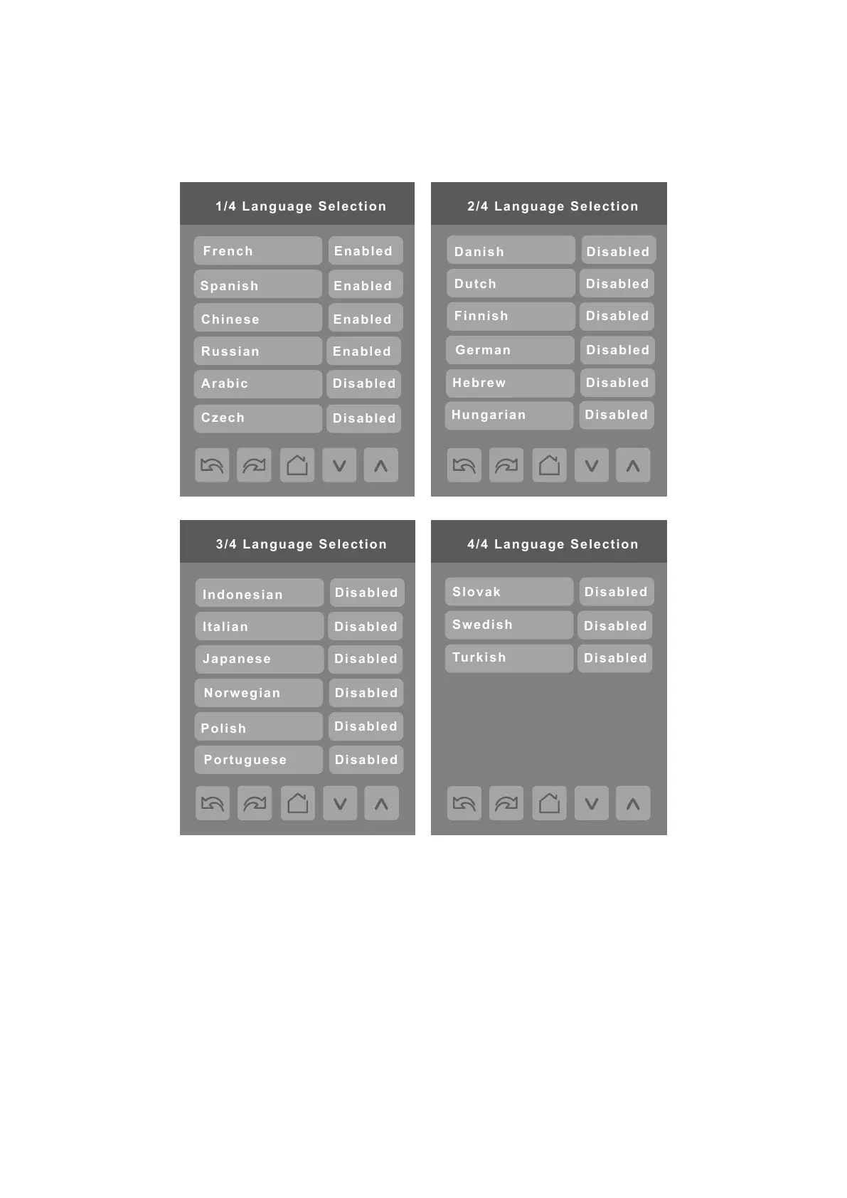 Only English, French, Spanish, Chinese, and Russian are enabled by default and are accessible to users cycling through