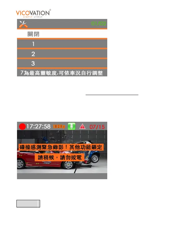 錄影功能。為了避免誤動作發生,G-Sensor功能預設為關閉