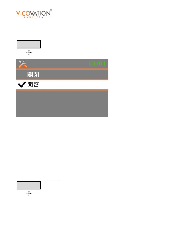 按右 可進入子選單。可選擇開啟或關閉。