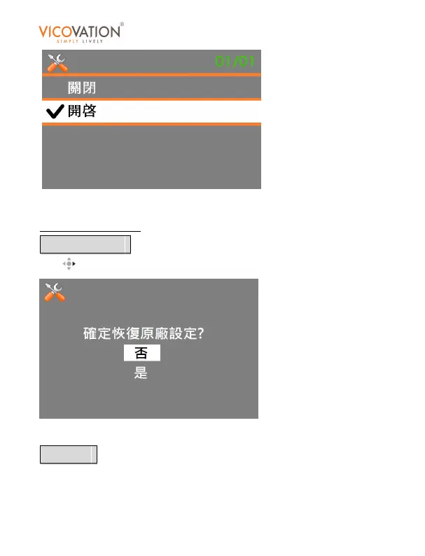 選擇是,所有設定將返回出廠值。