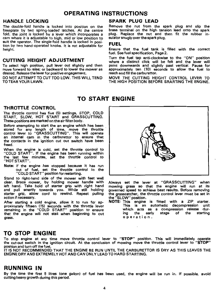 the grasscatcher, the throttle control lever must be set in