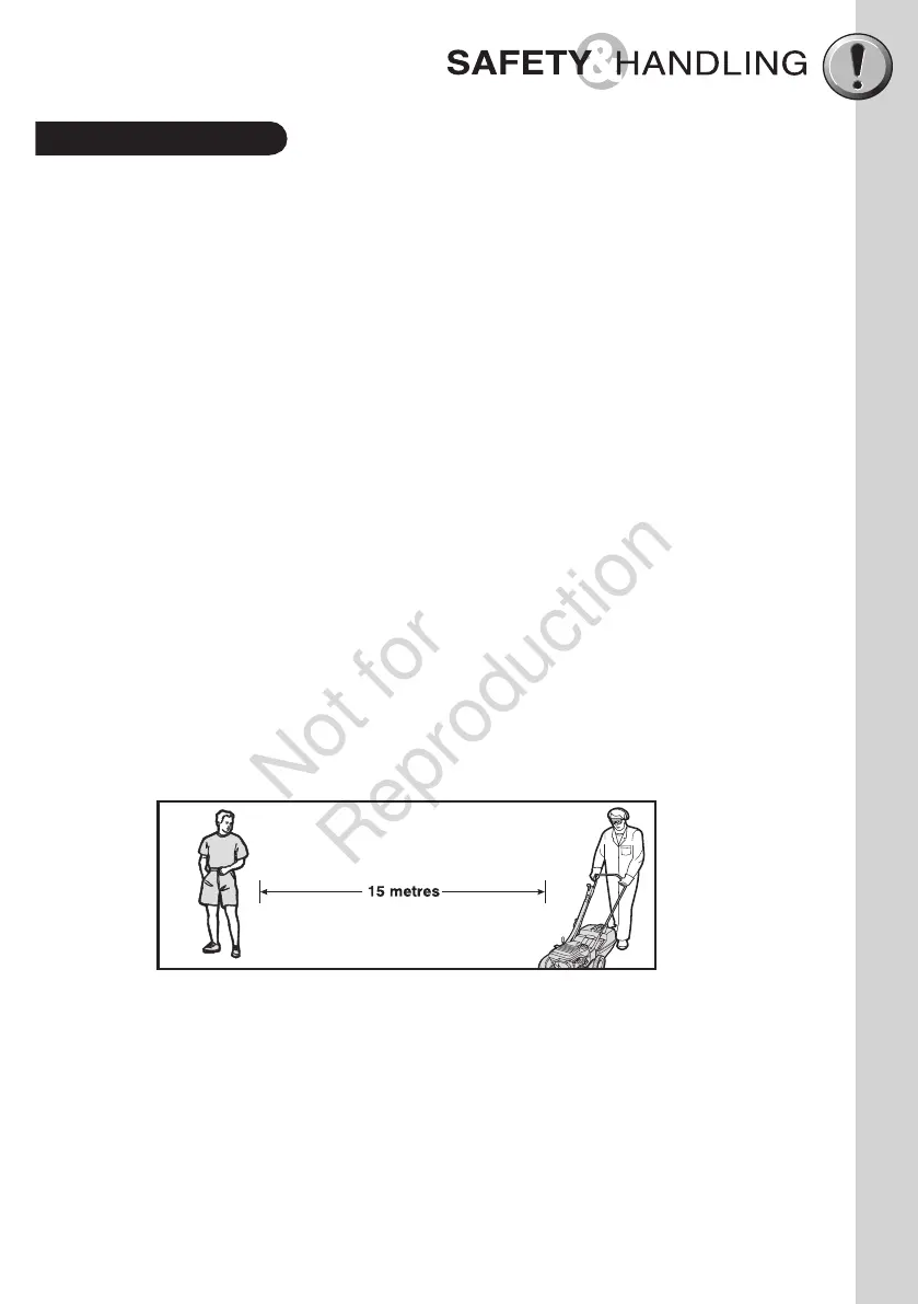 within the mowing area. Ensure that bystanders are a minimum of 15 metres away.