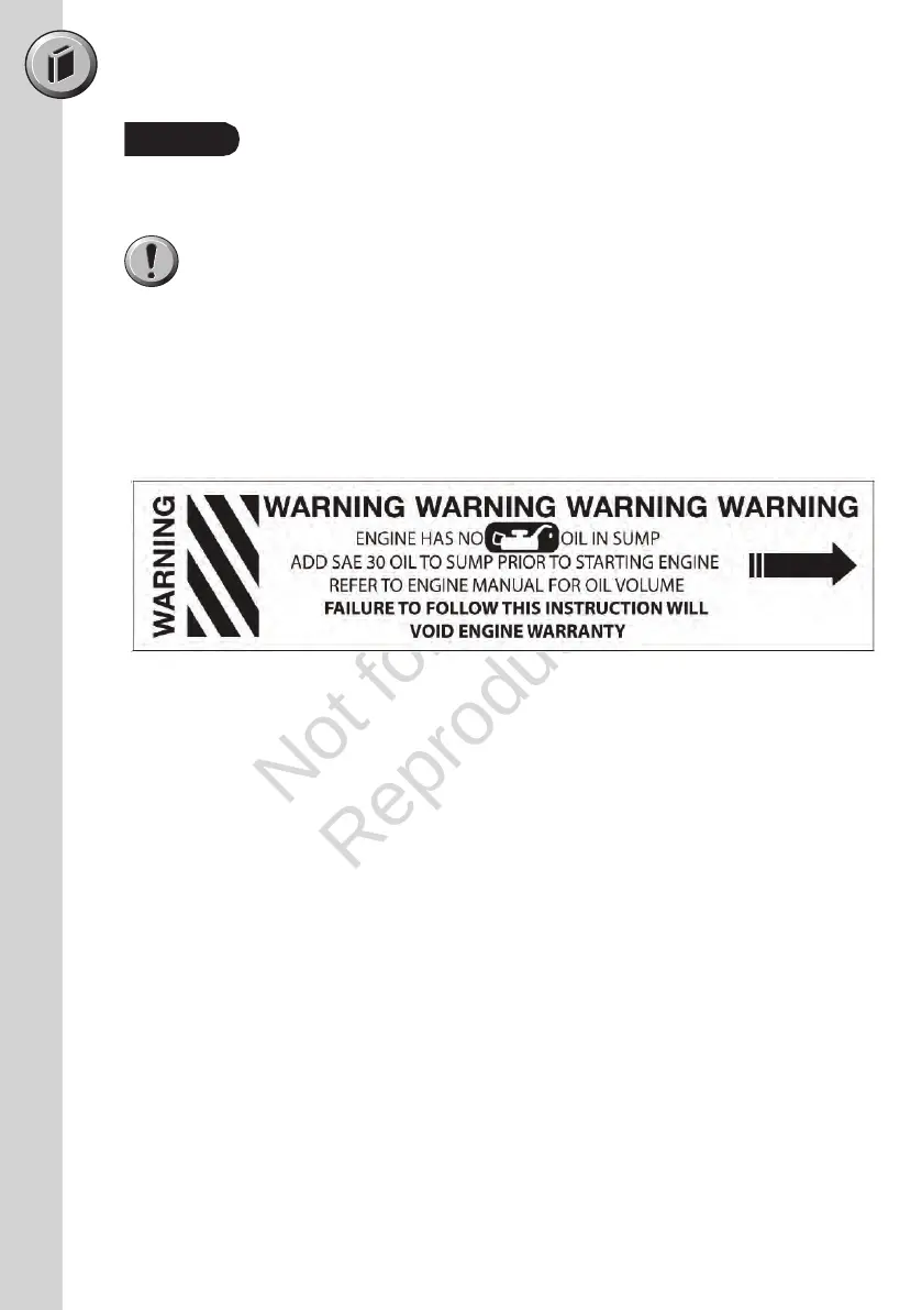 Engine must have SAE 30 Oil added to the Engine Sump before starting.
