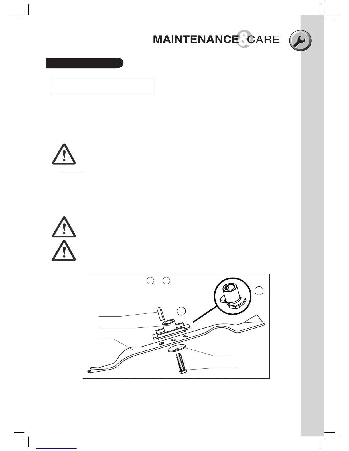 WARNING:Periodicallyinspectthebladeadaptorforcracks,