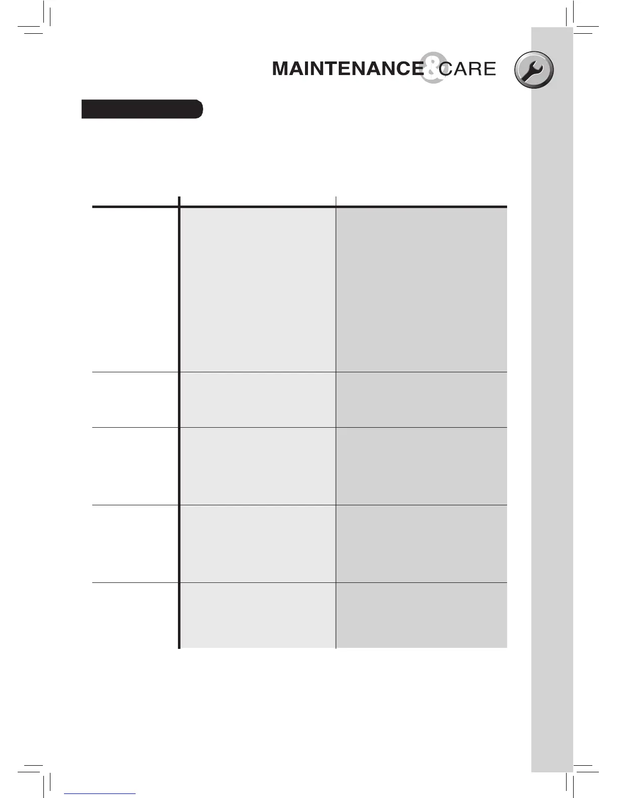 Excessivevibrations Build up of grass and dirt on upper Clean