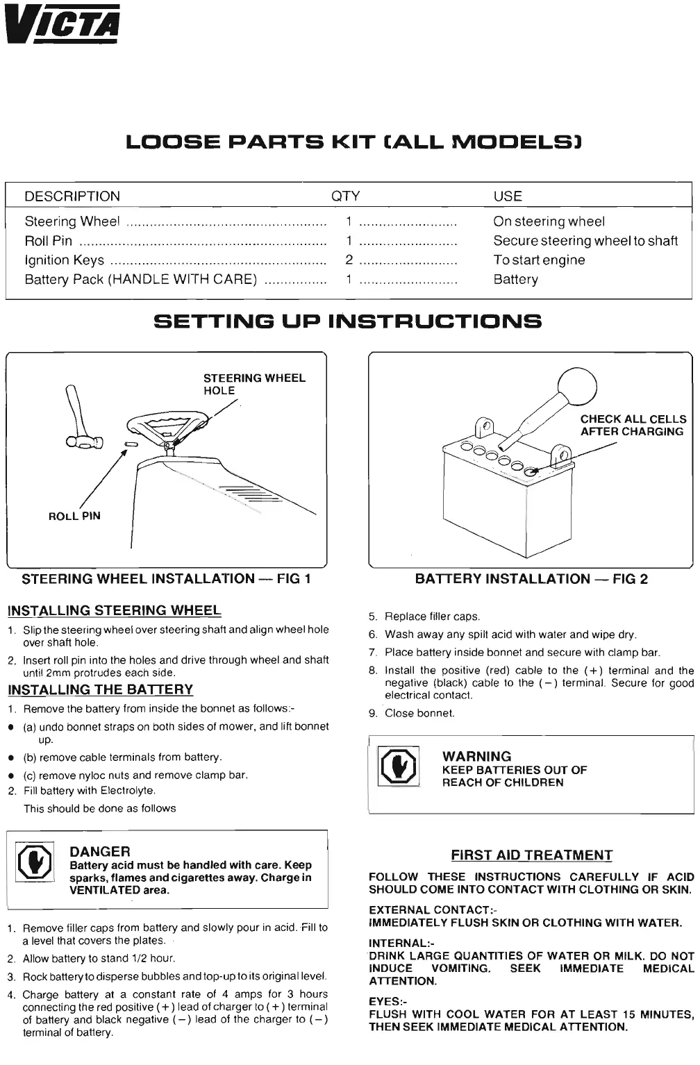 1. Remove filler caps from battery and slowly pour in acid. Fill to