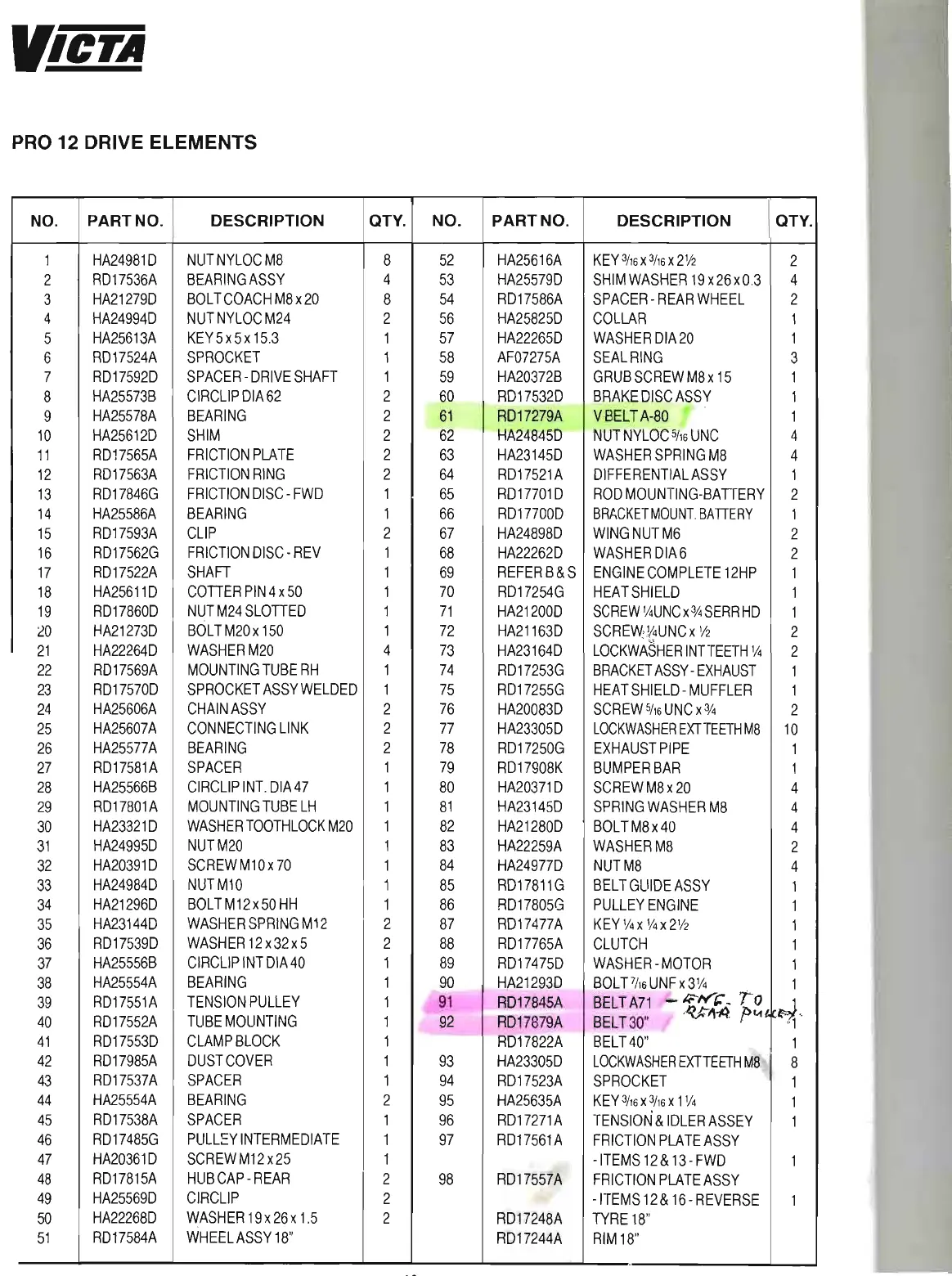Victa PRO 16 - Drive Elements