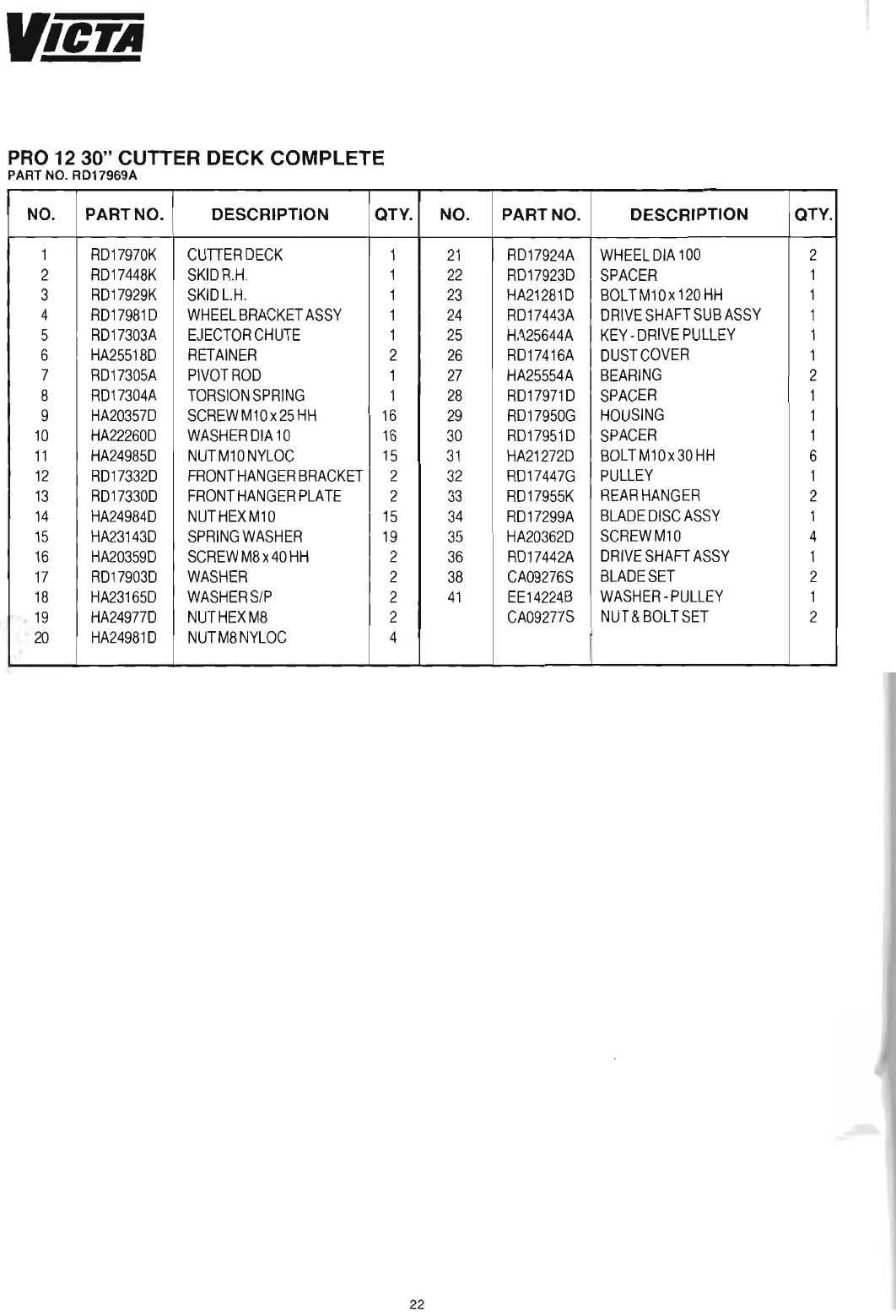 Victa PRO Series - Pro 12 30 Cutter Deck Parts; Cutter Deck Assembly; Deck Component Details