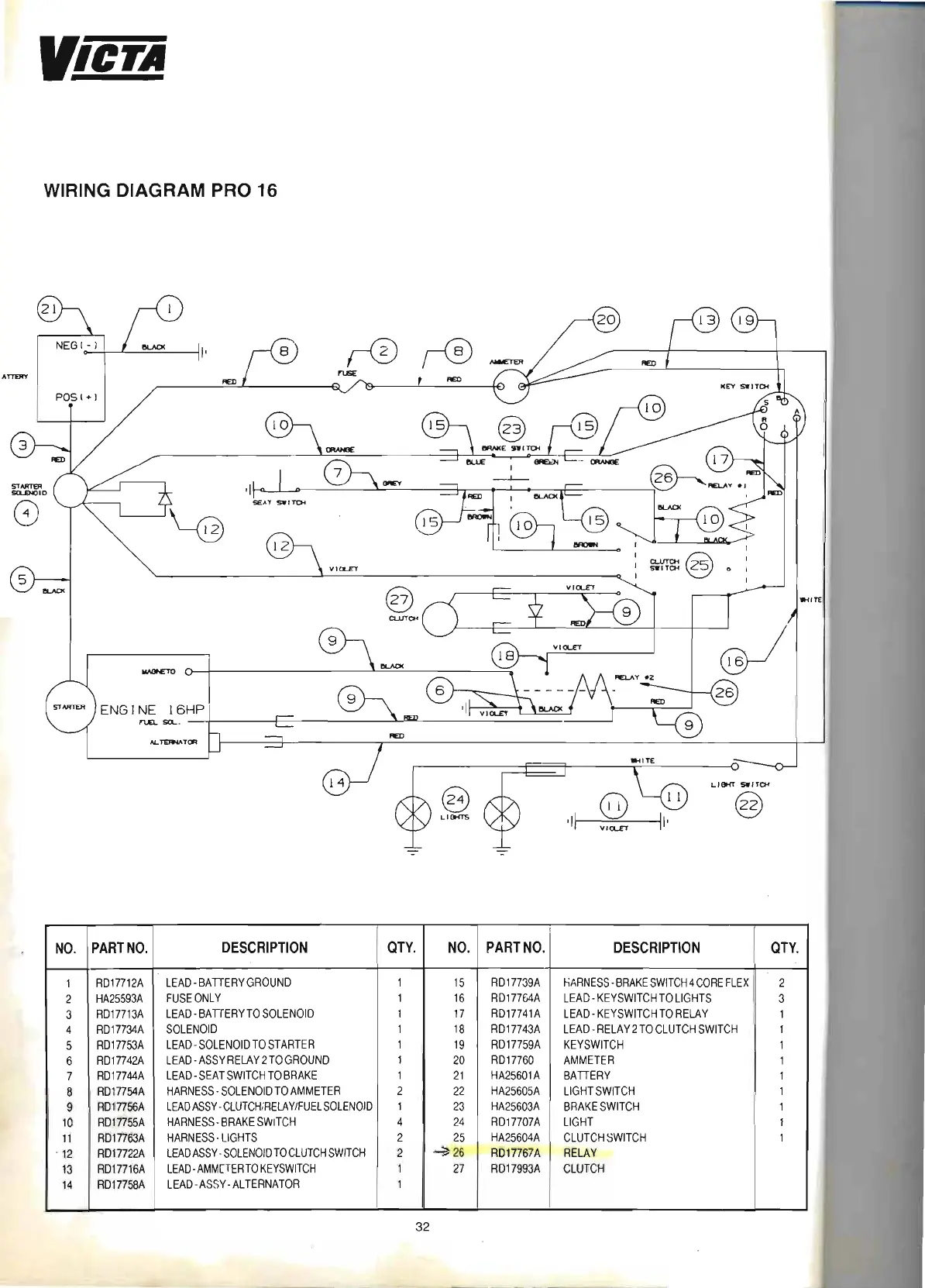 Victa PRO Series - Pro 16 Wiring Diagram; Wiring Diagram Components; Wiring Diagram Part Numbers