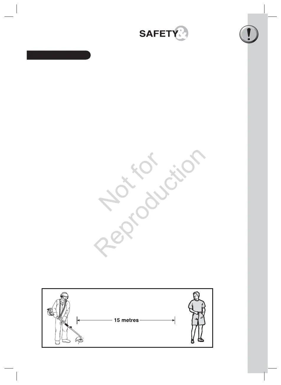 • Keep children, animals and bystanders outside the 15 metre hazard zone. Stop the