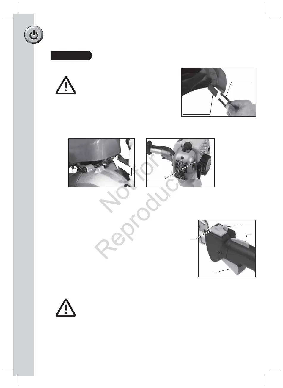 (6) Hold the machine firmly and pull out the starter cord until you feel it start to resist.