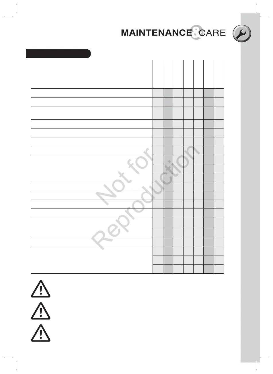 Refer to the following table for routine maintenance.