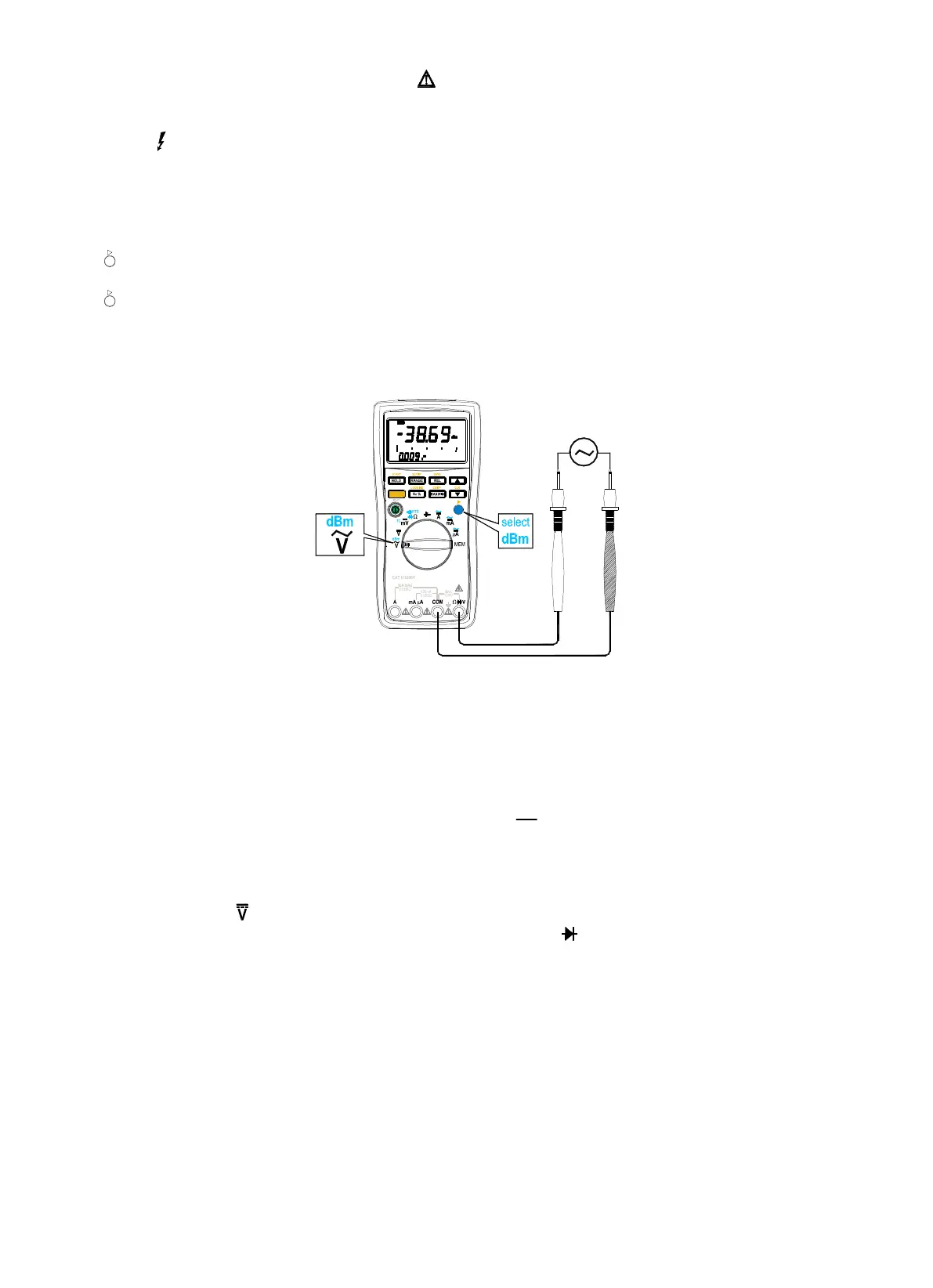2. Press to select dB. The dBm value appears in the primary display and the ac volts reading appears in the secondary