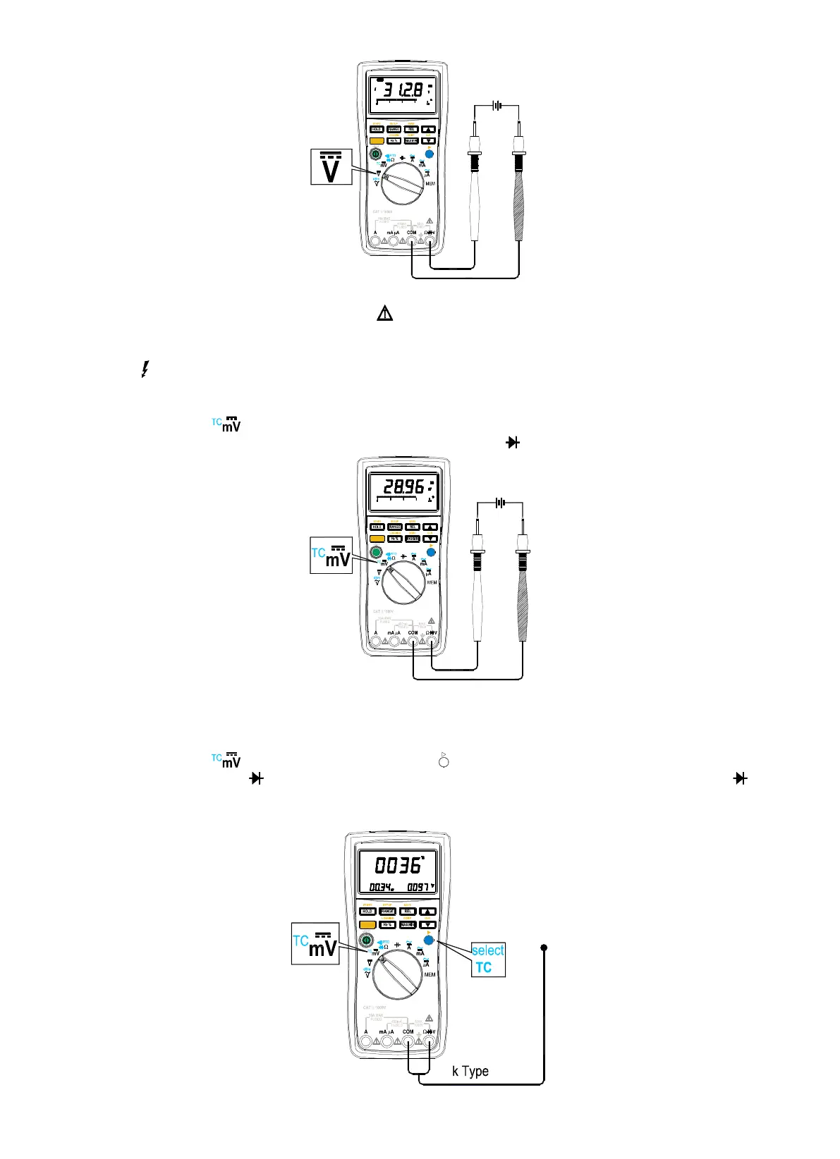 1. Set the rotary switch to position, and press blue button ( ) to select TC measurement.