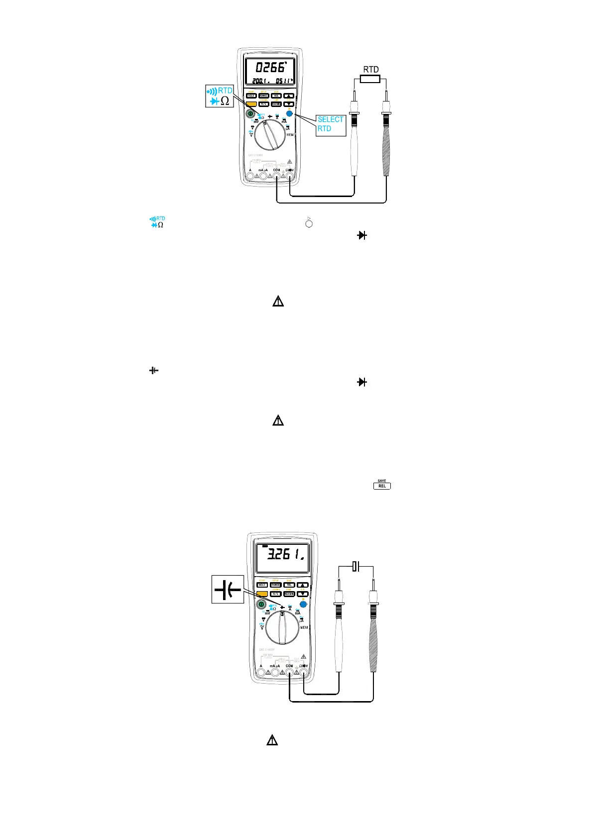 1. Set the rotary switch to position, and press blue button ( ) three times to select diodes testing.