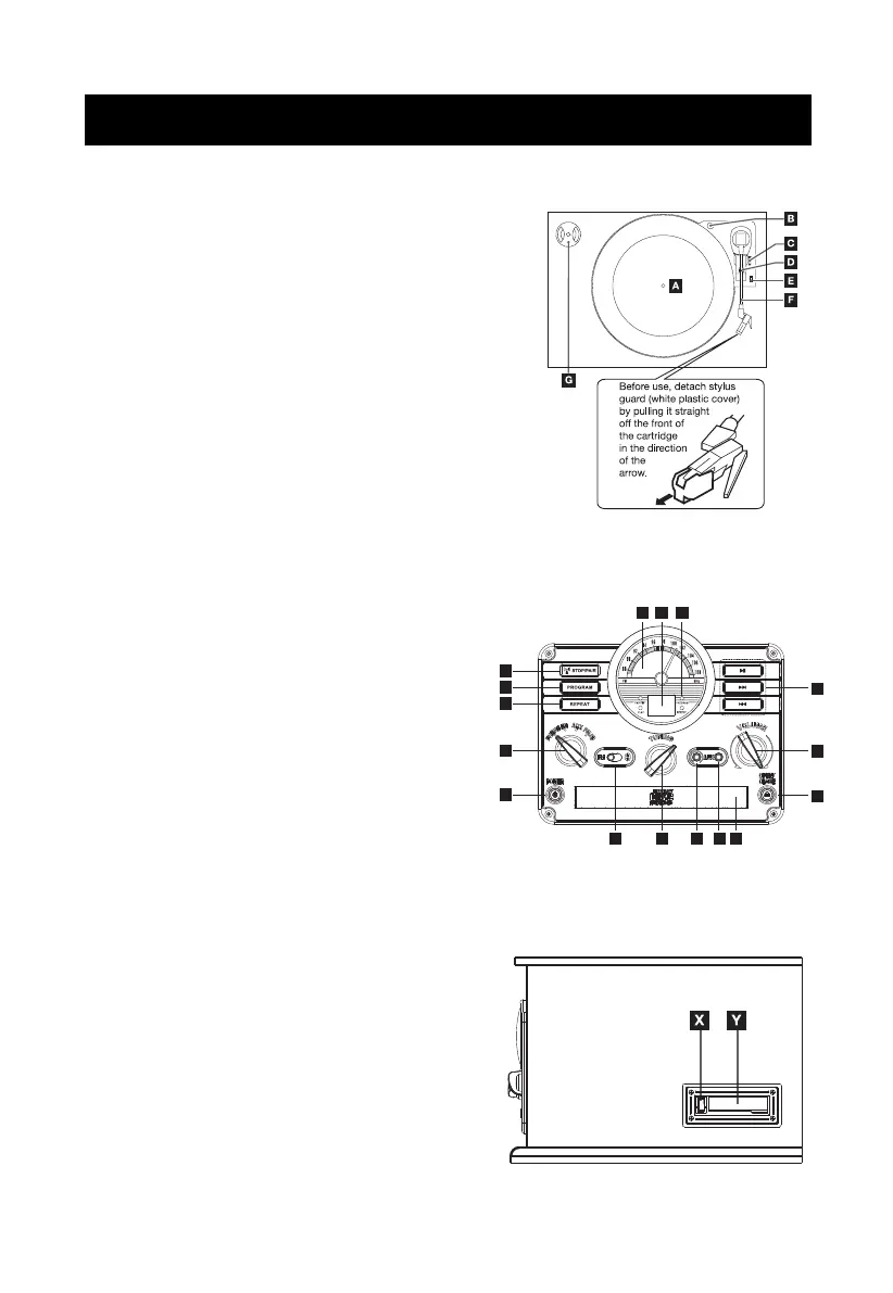 O. Function Knob: Rotate knob to select Phono,