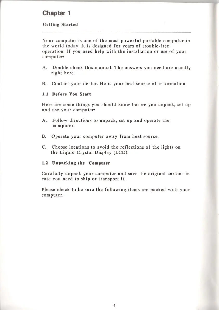 Victor V86P - Before You Start; Getting Started; Unpacking the Computer
