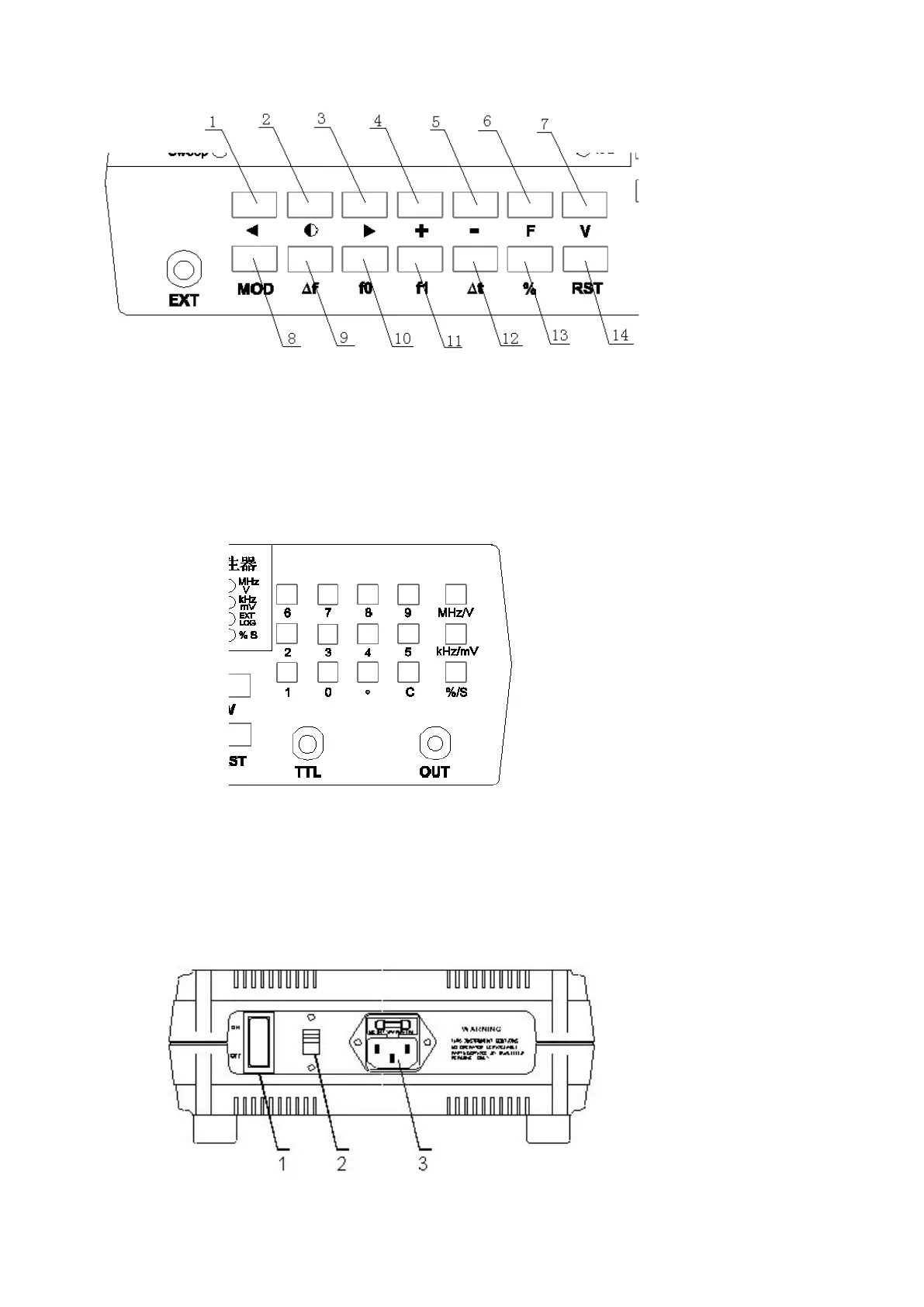 12. < ∆ t> frequency sweep time interval setting key 13. <%> modulation depth setting key 14. <RST> reset key