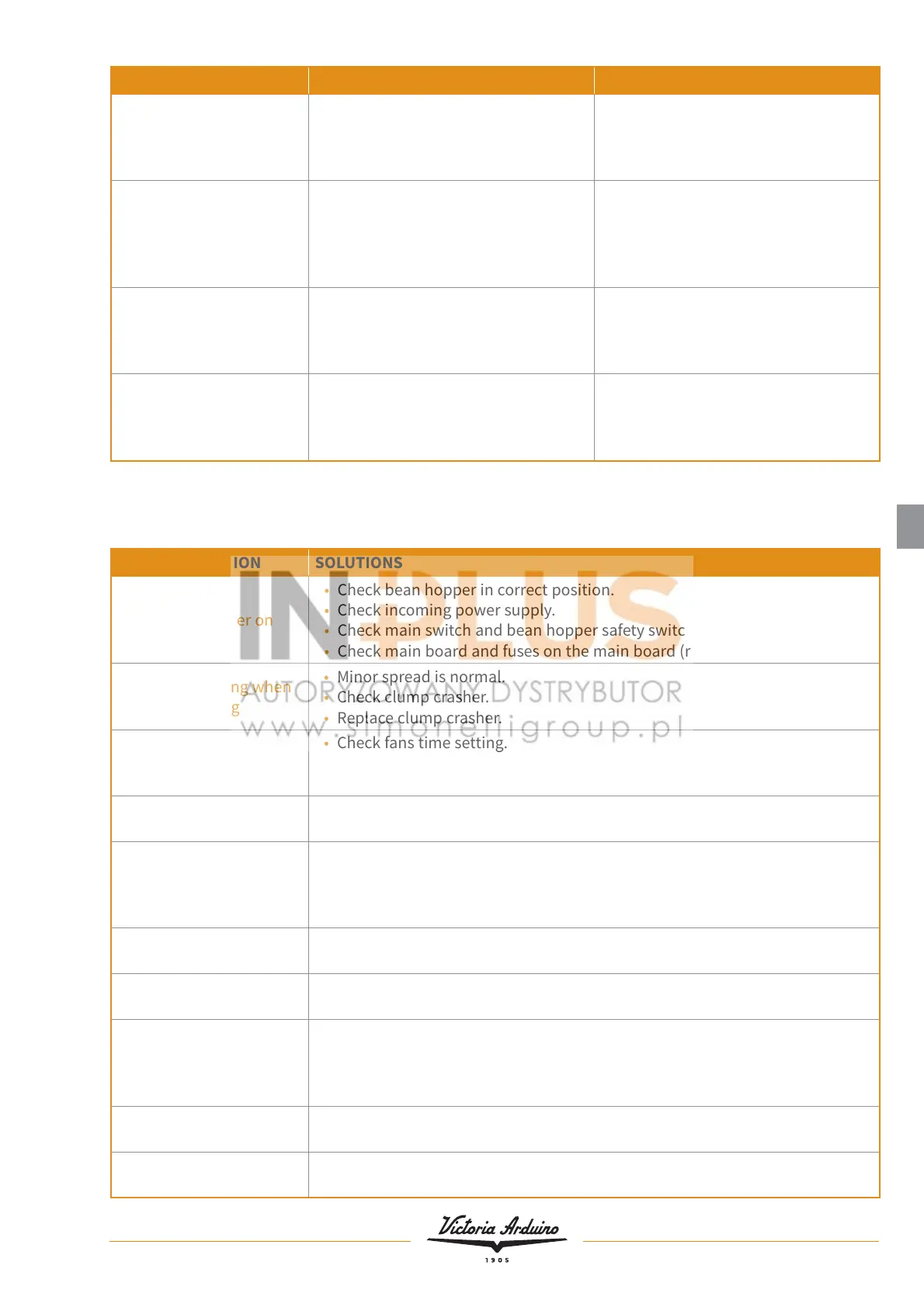 • Check main switch and bean hopper safety switch (replace if necessary).