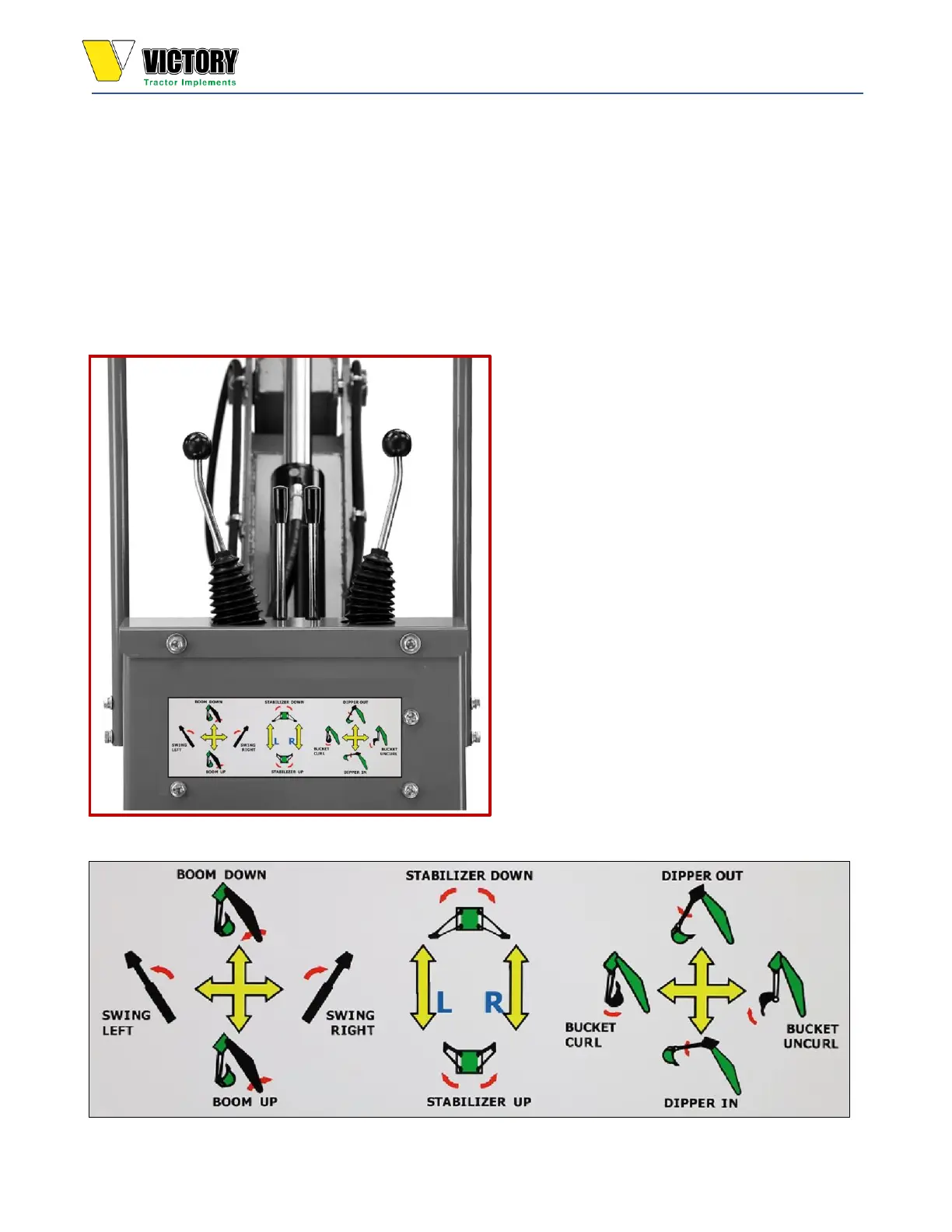 Studying the instruction decal will assist you in becoming familiar with the Backhoe controls.