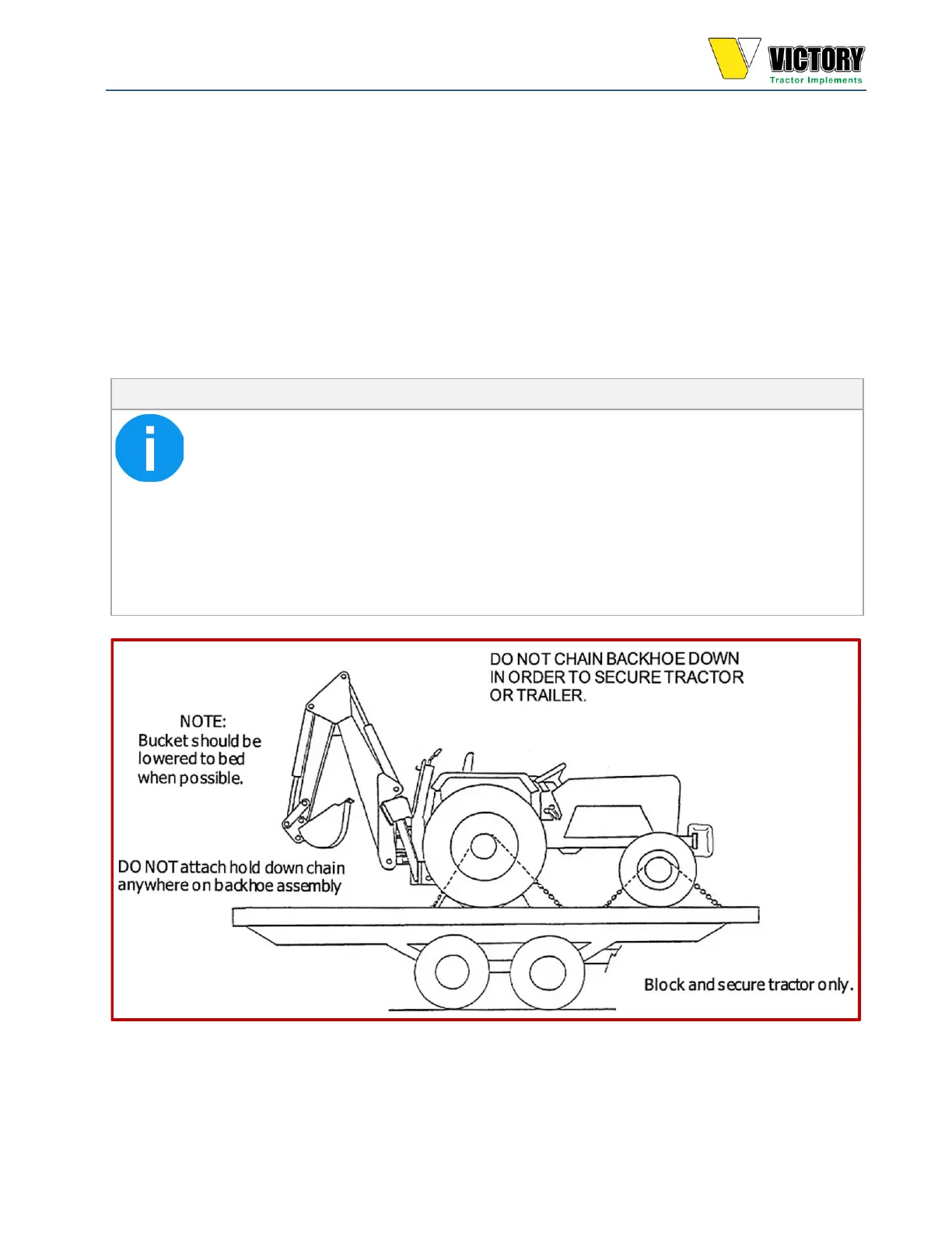 • ENGAGE BOTH SAFETY LOCKS WHEN TRANSPORTING THE BACKHOE.