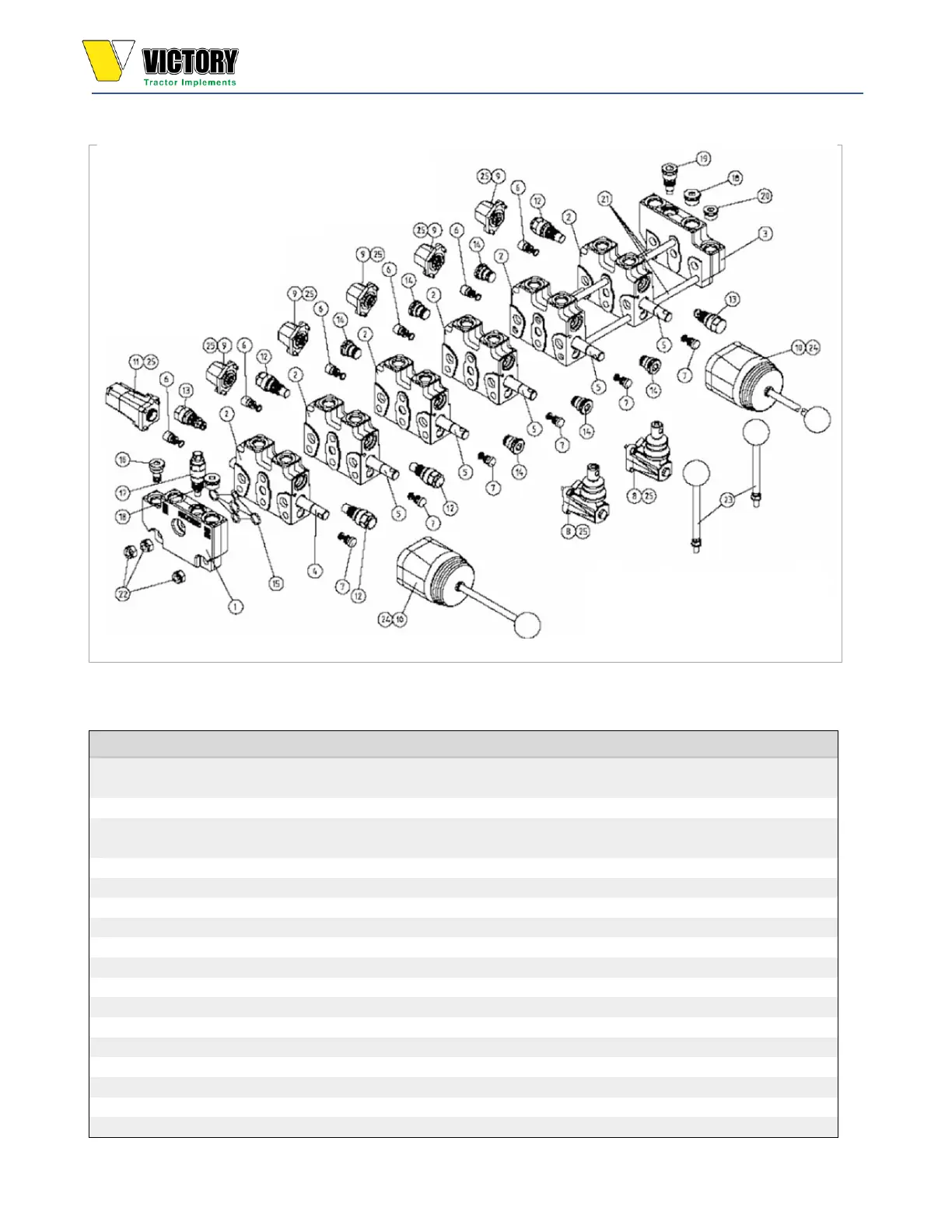 VICTORY Backhoe Exploded View; Hydraulic Control Valve BH7