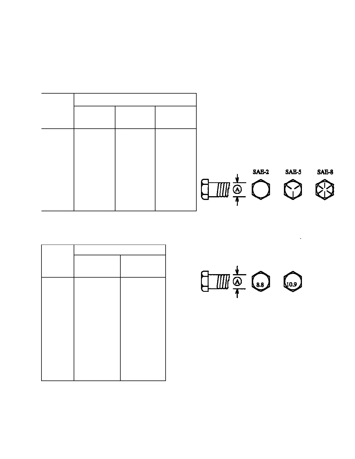 The tables shown below give correct torque values for various bolts and capscrews. Tighten all bolts to
