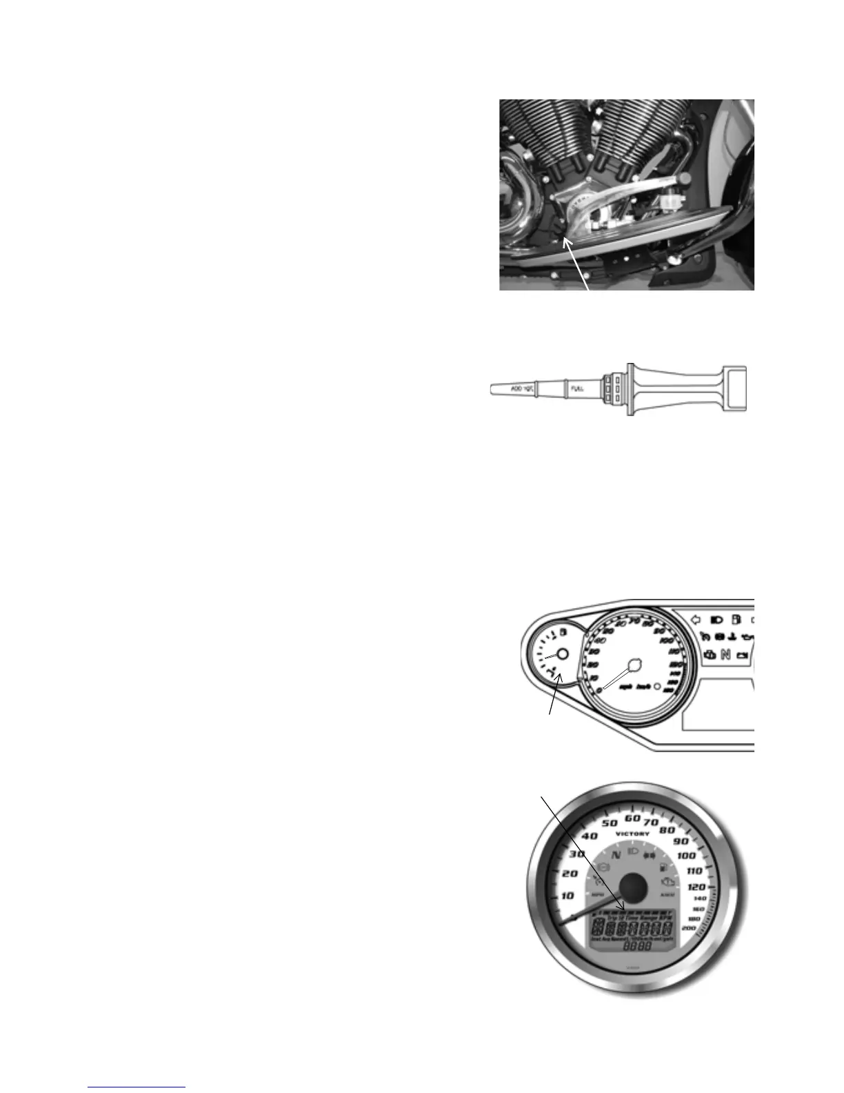motorcycle with the oil level above the FULL mark or below the ADD mark.