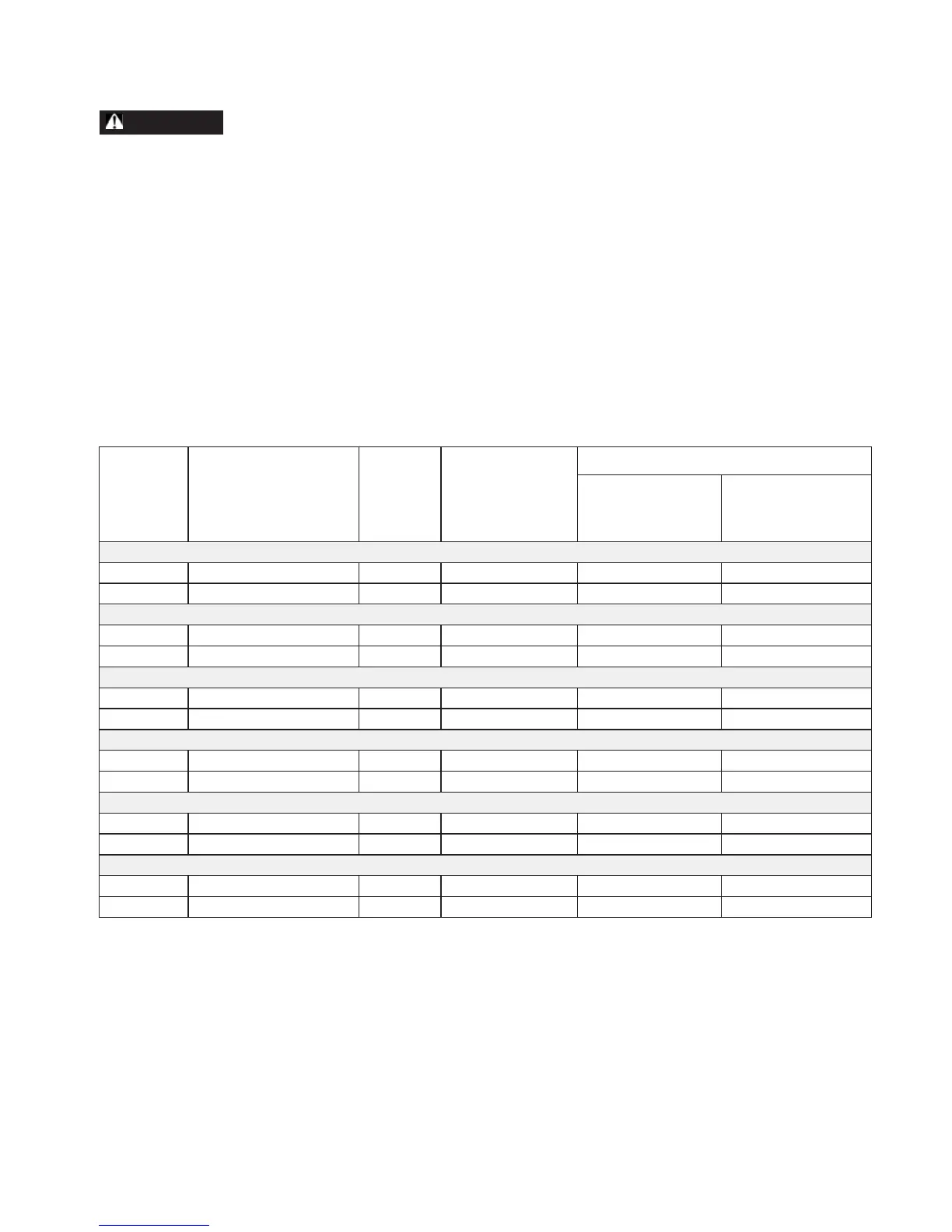 specified in the table below and in the specifications section of this manual.