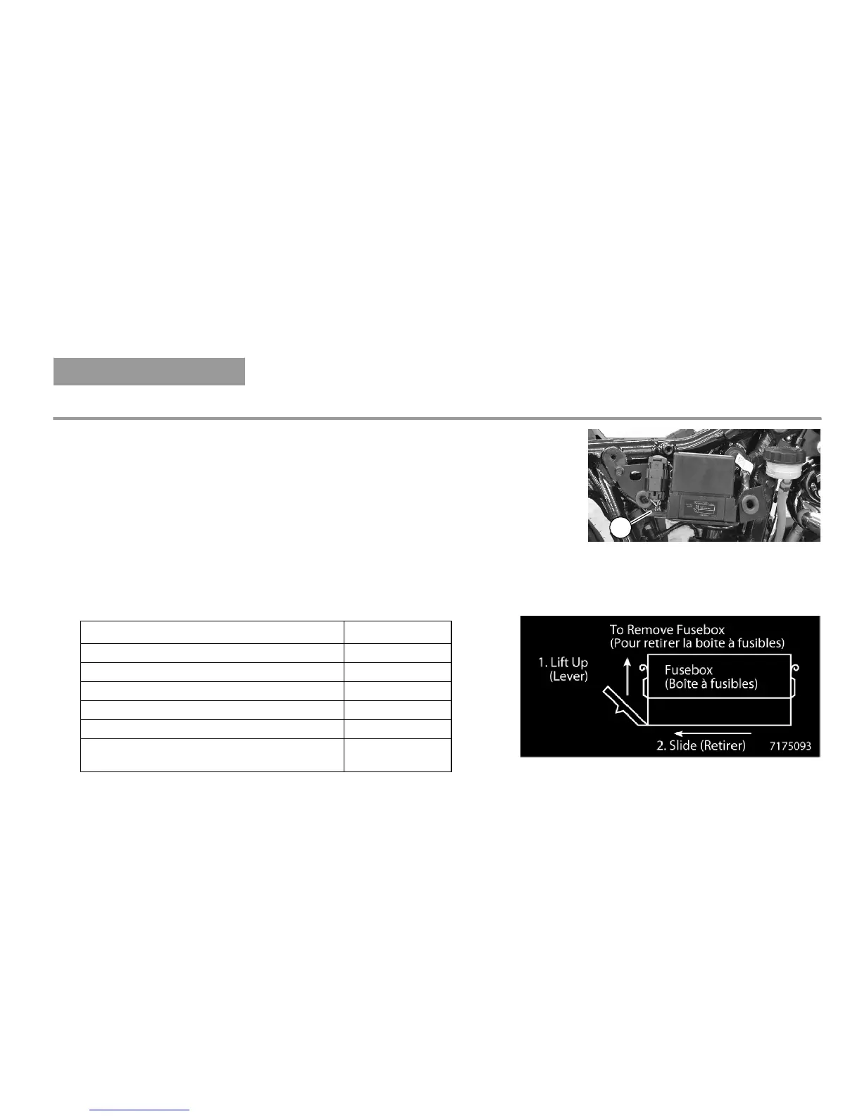 1. Remove the right side cover. Release the fuse box from the bracket by