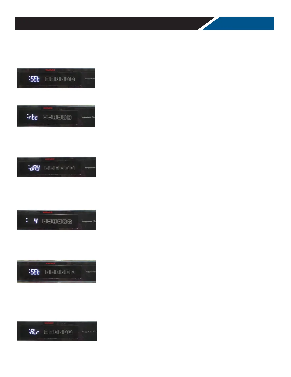 To set the real time clock, press and release the set button to enter the machine status menu. “Set will appear on the