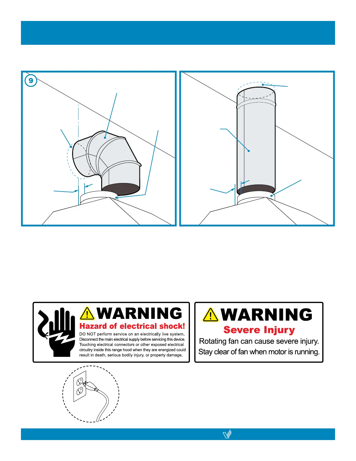 SAFETY WARNING: Risk of electrical shock. this range hood must be properly grounded. Make sure this