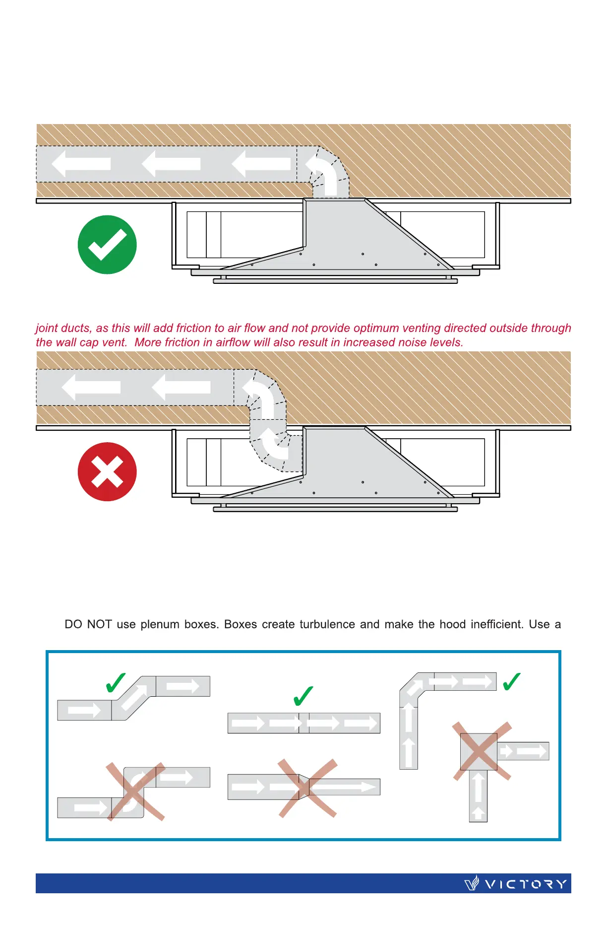 b. DO NOT use REDUCERS. Keep the size of the duct the same, as per the manual. A reducer