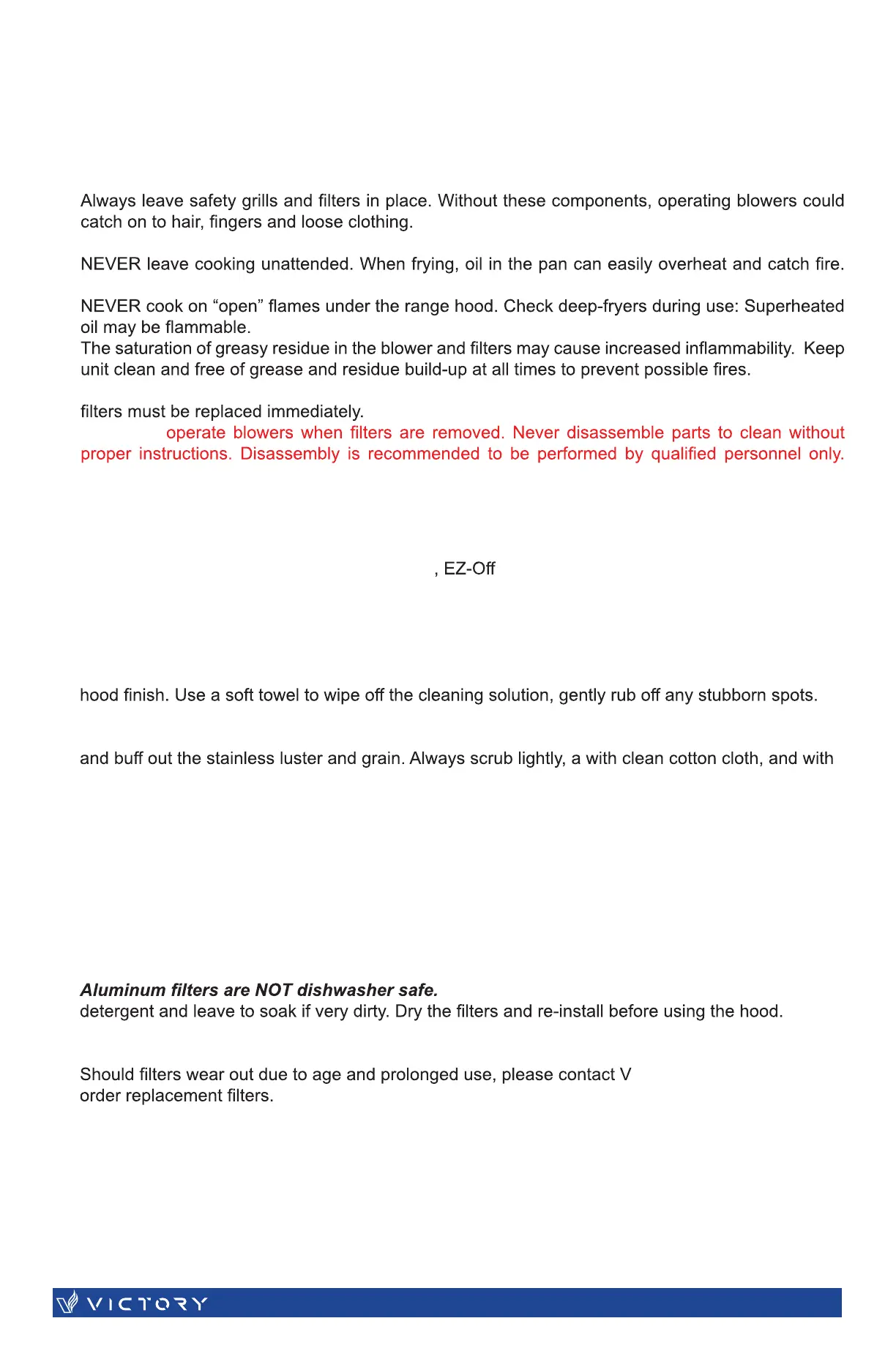 NOTE: For all other inquiries, please contact Victory Range Hoods.