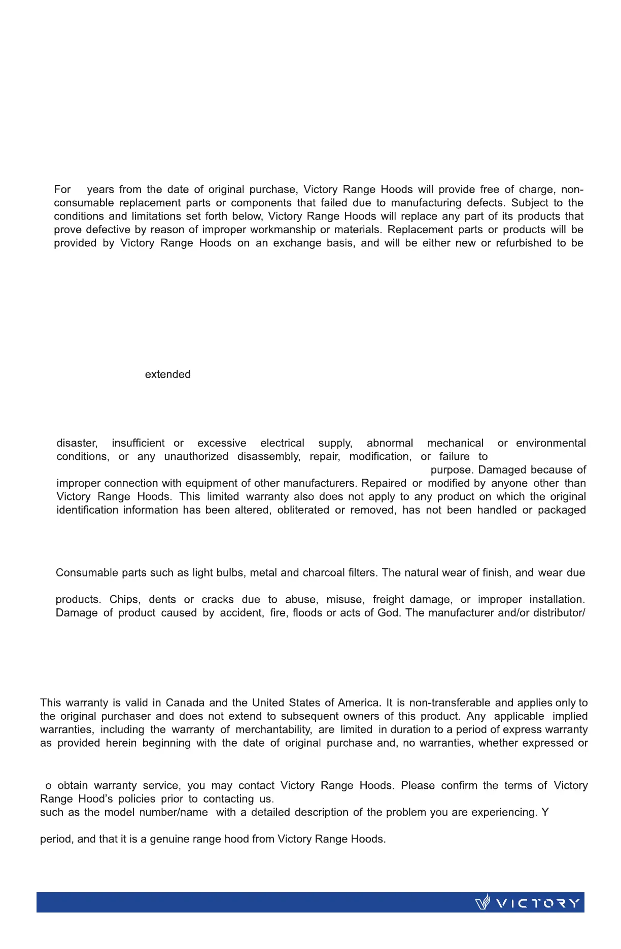 warranty is only valid for as long as the original purchaser owns the range hood. If the range hood is re-