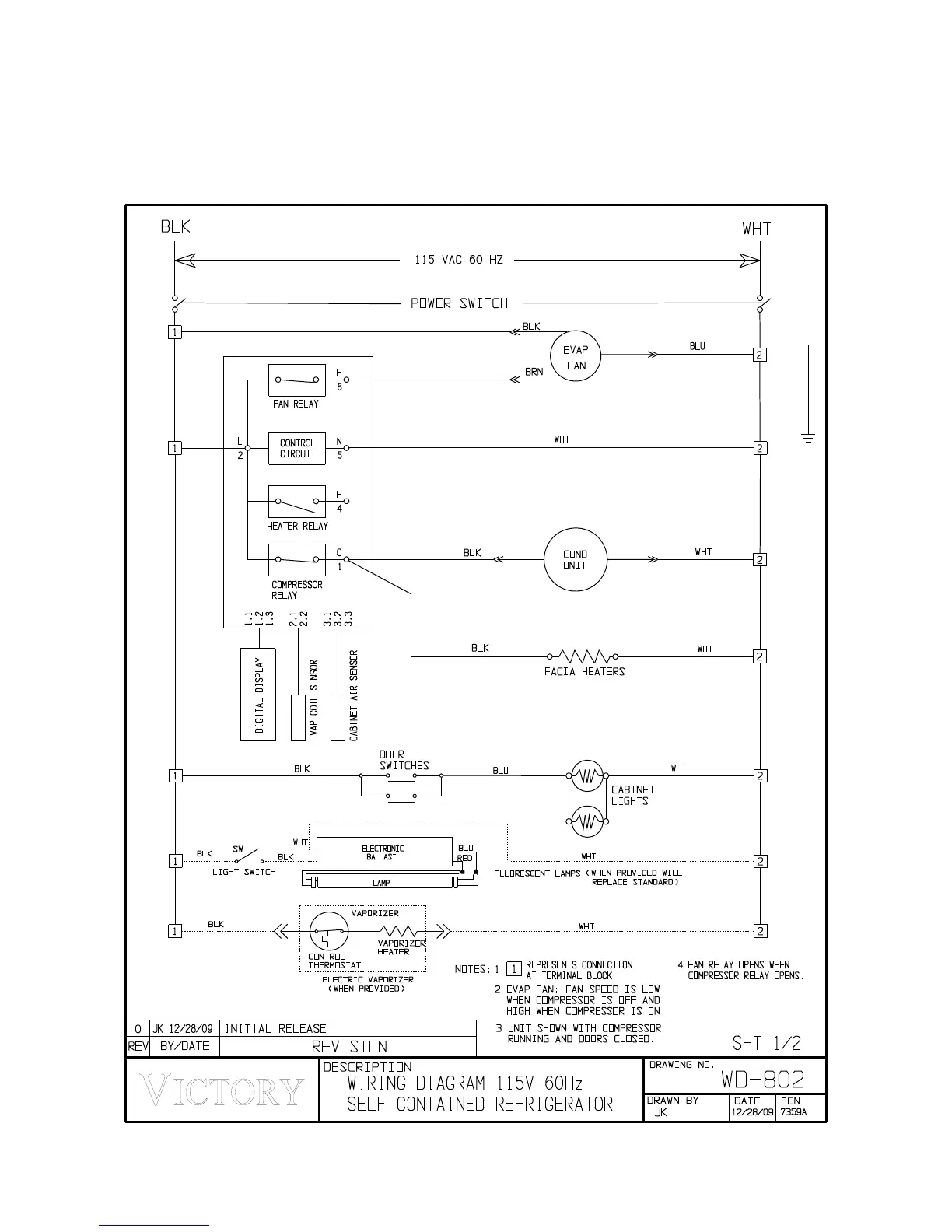 Victory VR-1 - WIRING DIAGRAMS; 1, 2 & 3 Section Refrigerator Wiring