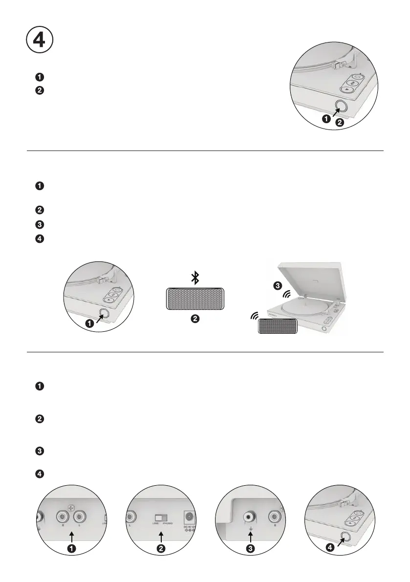 Connect the turntable to external speakers or receiver using the included RCA cable.