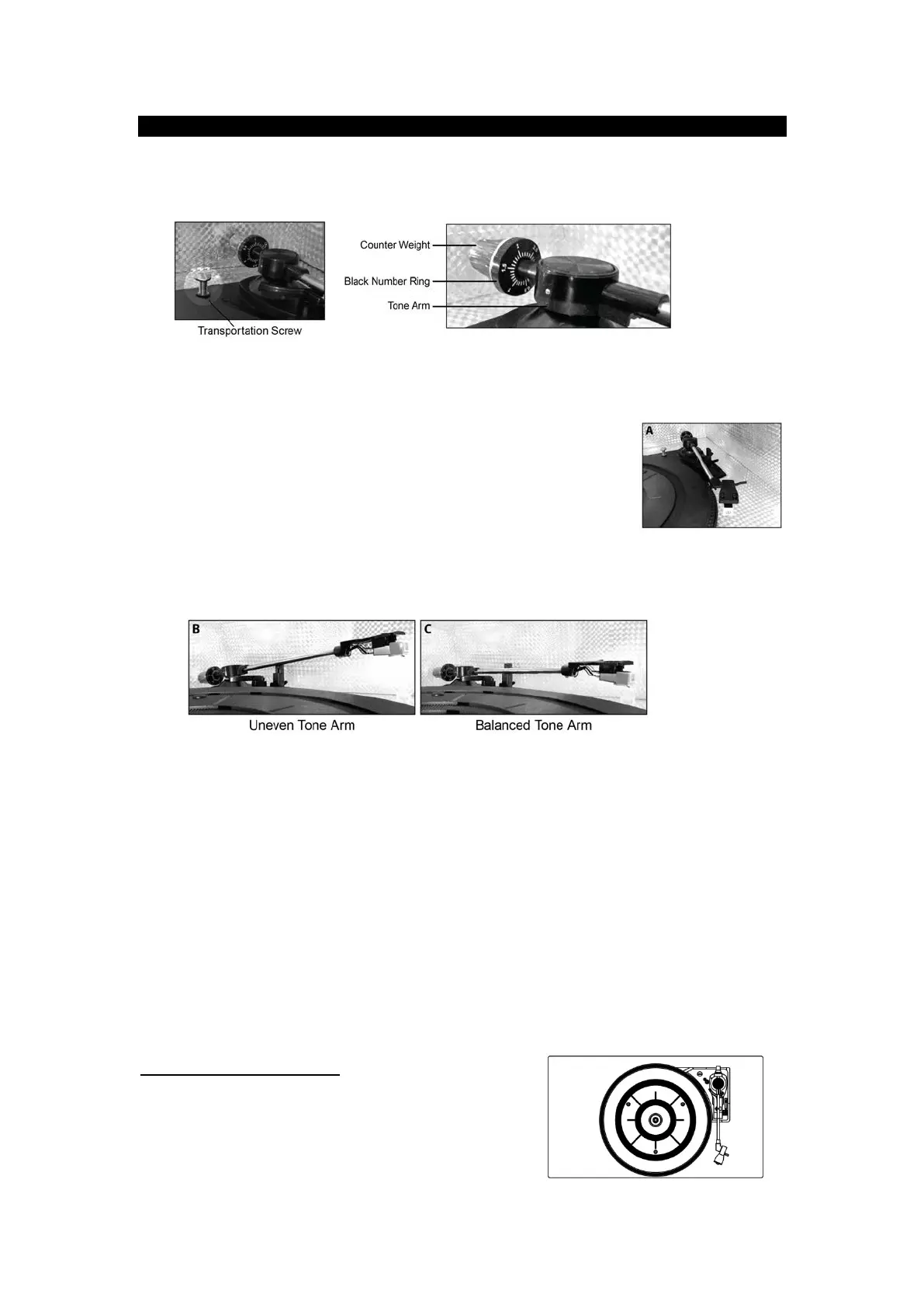 ***The Counter Weight on the tone arm MUST be properly set-up before first use!