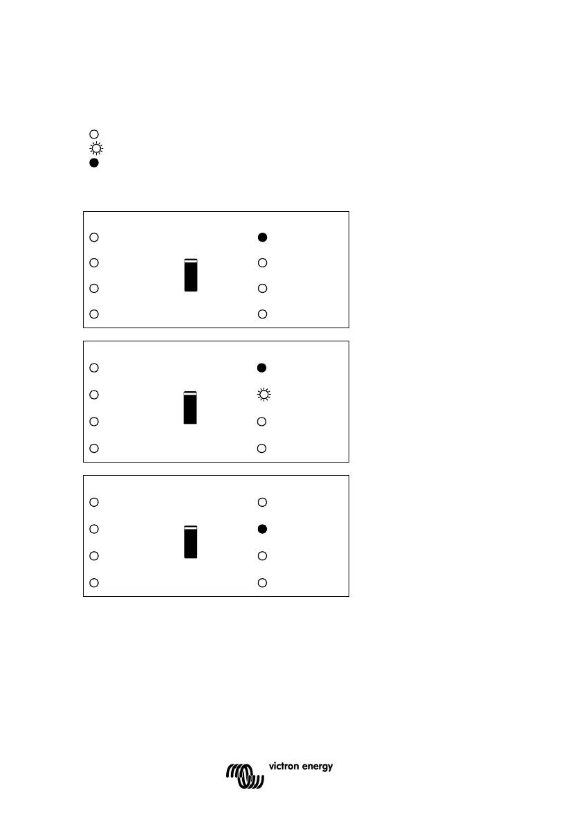 Victron energy MultiPlus 12/3000/120 – 50 - 3.4 LED Indications; Inverter LED status indicators; Charger LED status indicators