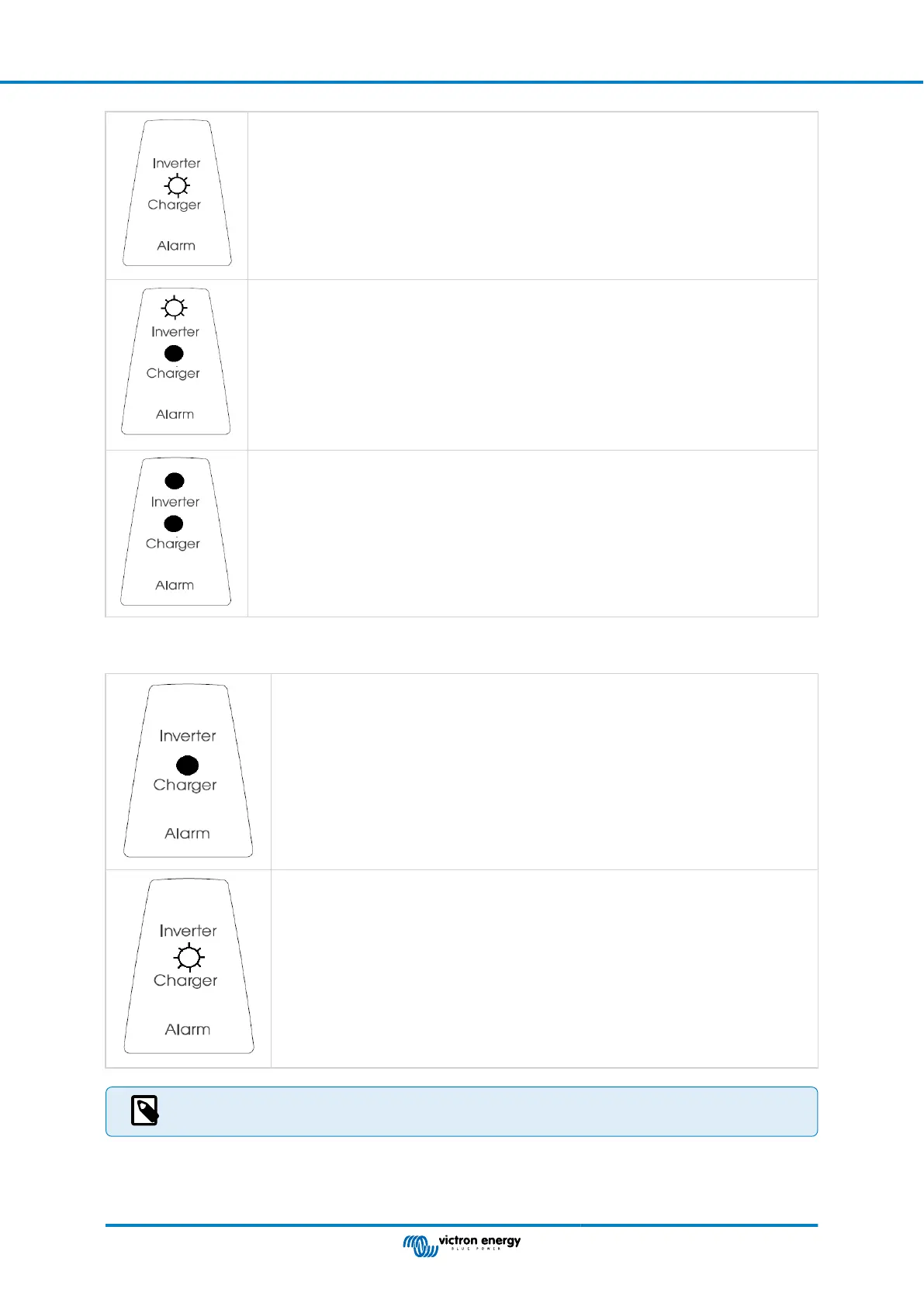 The inverter is switched on and, in case of PowerAssist, assists the AC input by supplying
