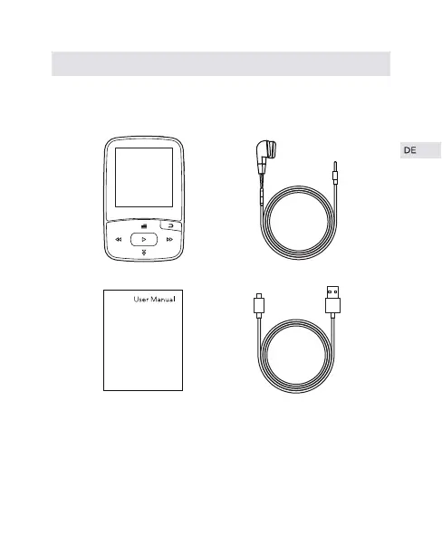 1. Victure M3 MP3 Player 2. Kopfhörer 3. Bedienungsanleitung 4. USB Kable