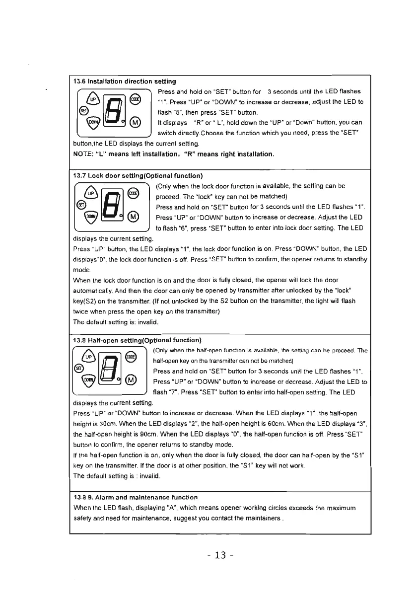flash "7". Press "SET' button to enter into half-open setting. The LED