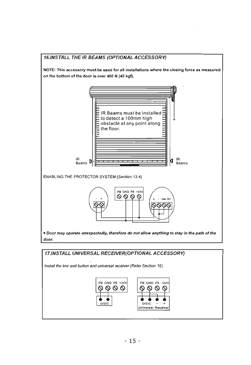 16.1NSTALL THE IR BEAMS (OPTIONAL ACCESSORy)