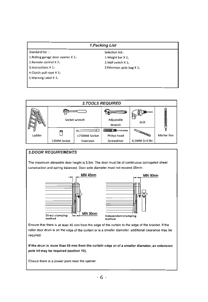 construction and spring balanced. Door axle diameter must not exceed 35mm.