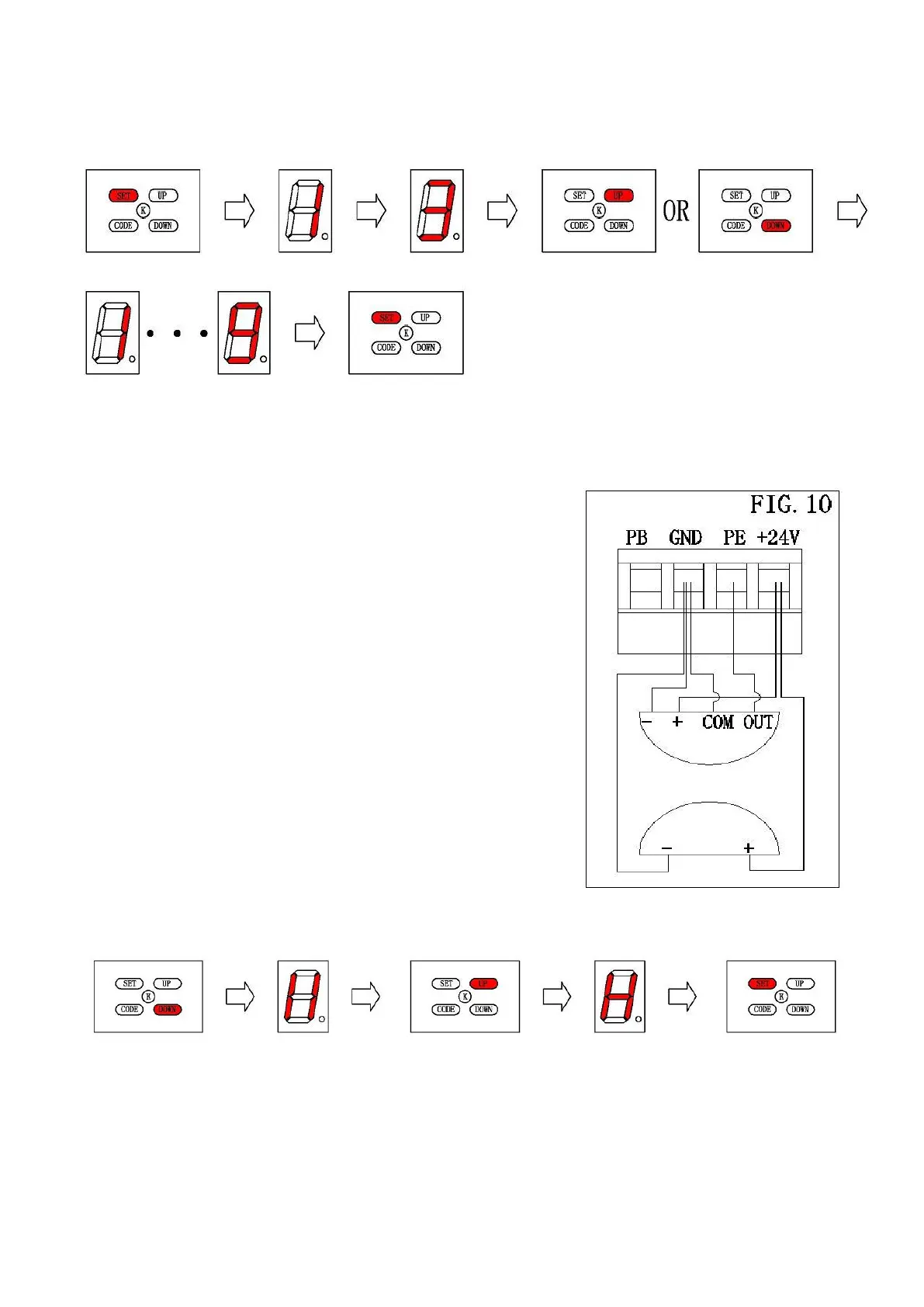 4.4.1 Press ‘SET’ button and hold on until the LED displays figure ’3’. Press ‘UP’ button to increase the force,