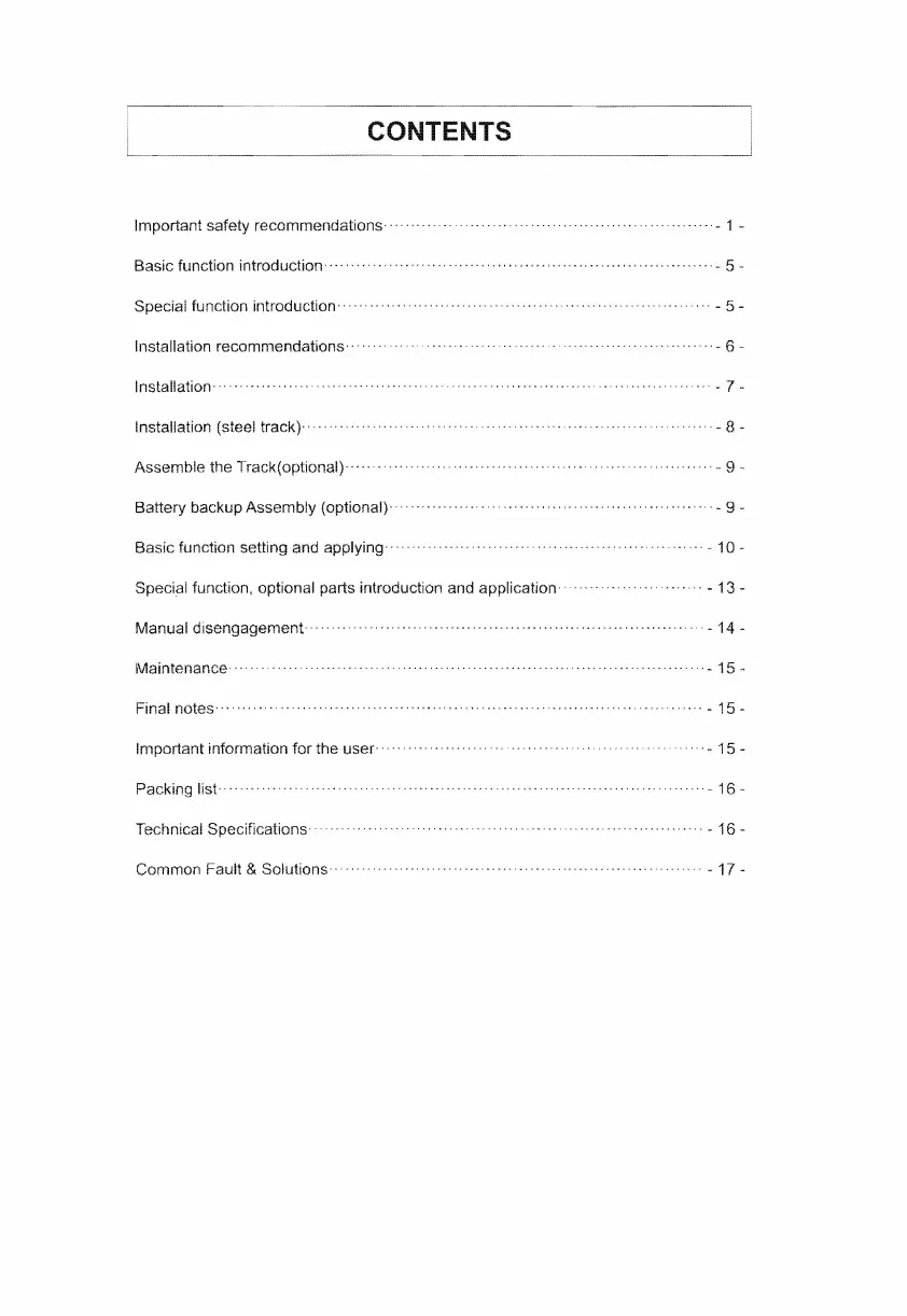 Vicway VT380M - Table of Contents