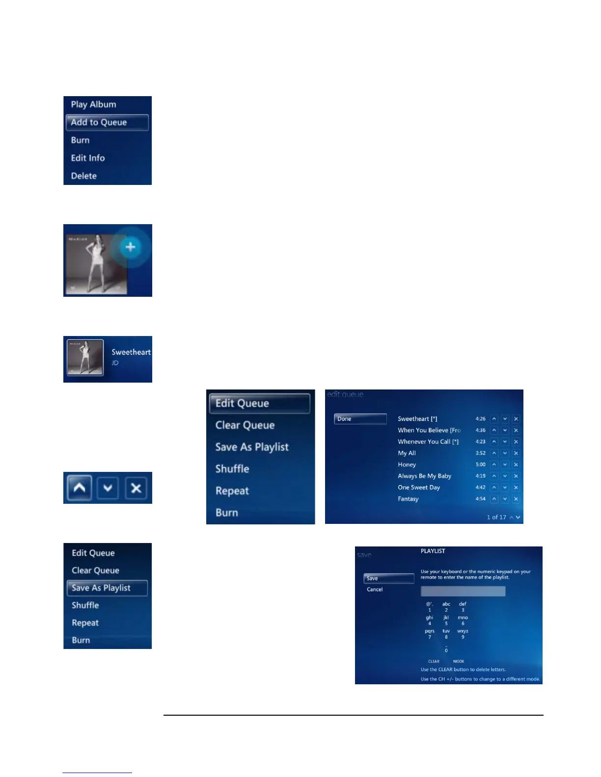 3. The music Queue screen is now displayed, as shown below. Highlight Edit