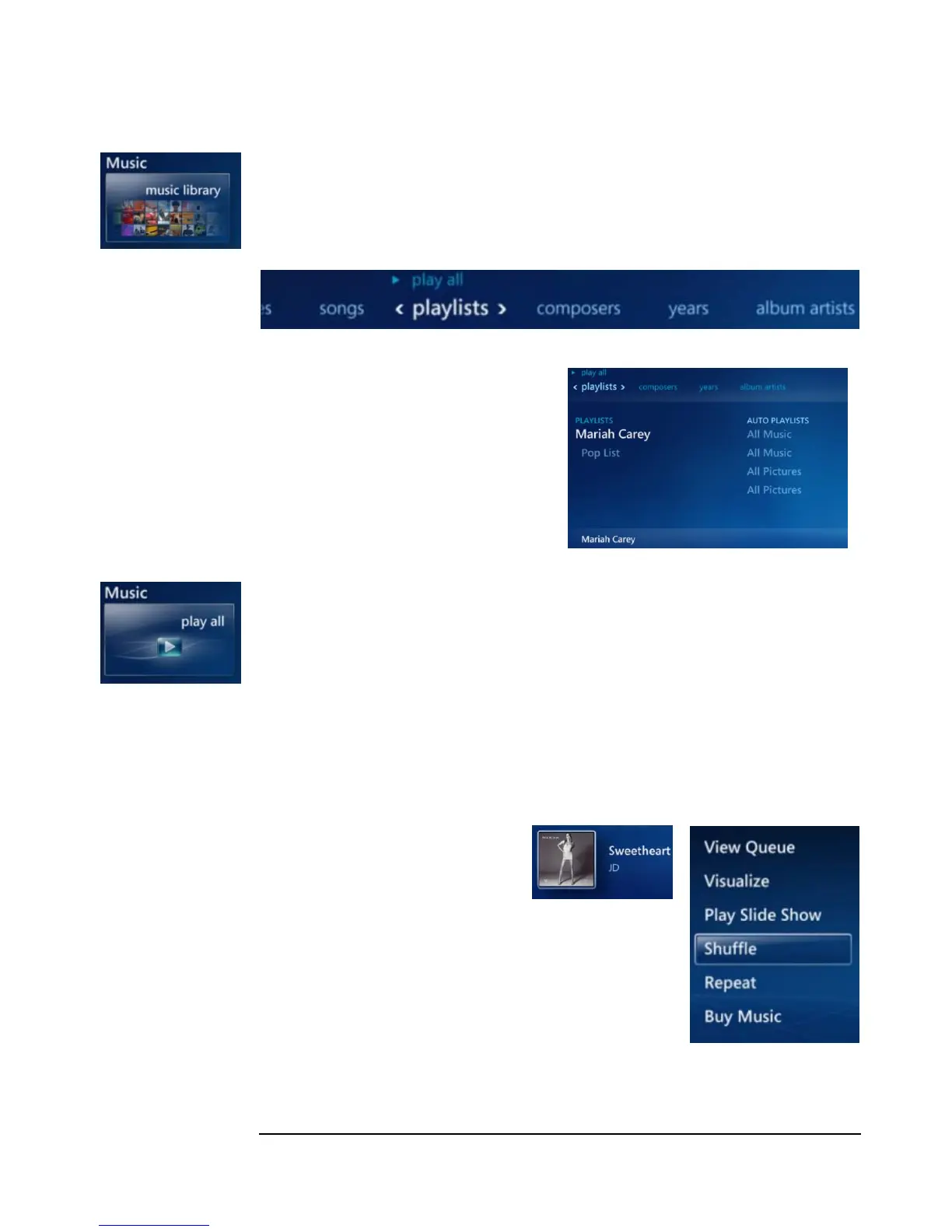1. Starting from Music, highlight and select Music Library. Press up to highlight