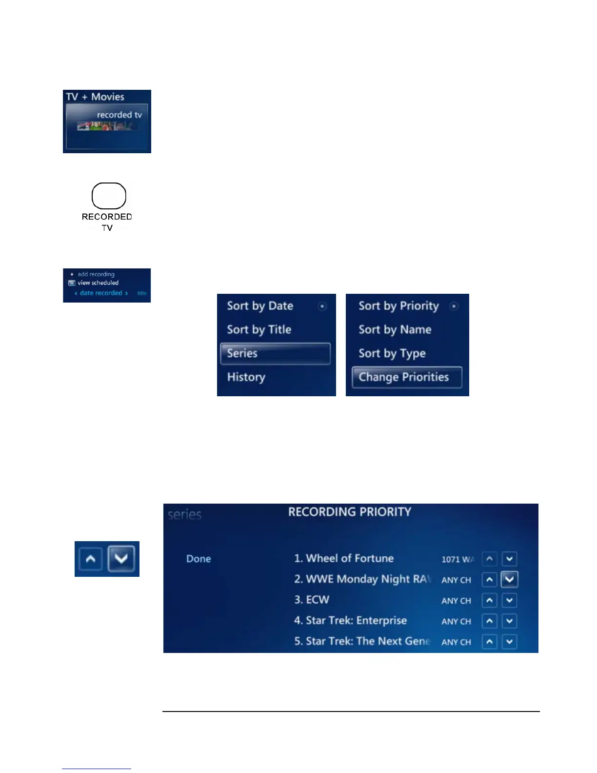 5. On the Recording Priority Menu, you can change the shows’ priorities by